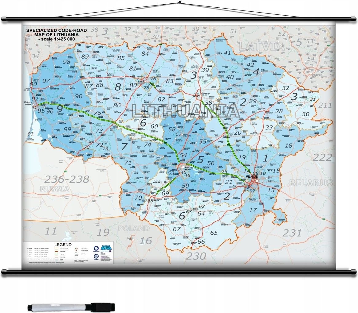 Litwa. Mapa Ścienna Kodowo-Drogowa Barczewo
