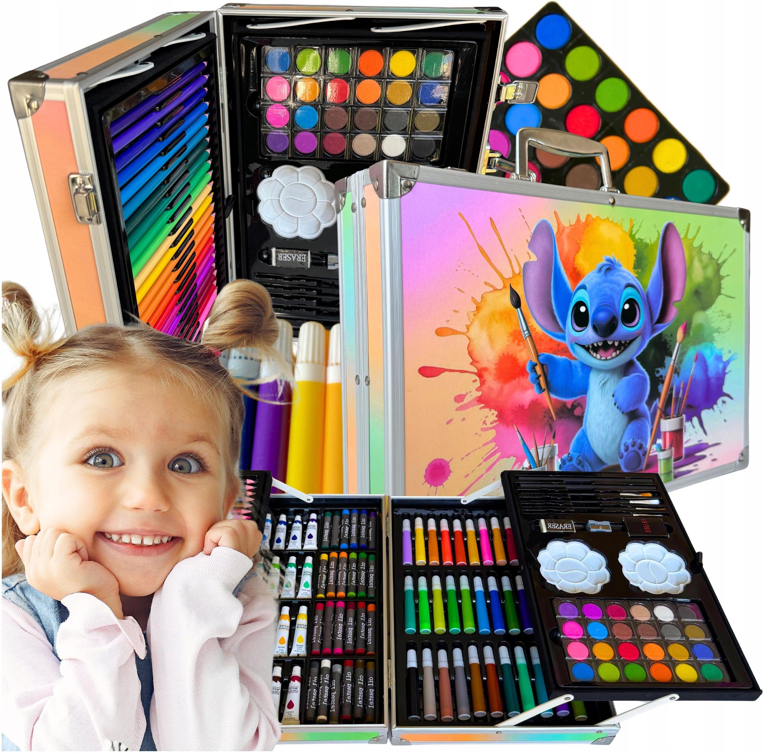 ZESTAW ARTYSTYCZNY DO MALOWANIA DLA DZIECKA PLASTYCZNY KREATYWNY z WALIZKA 145 elementów | ✅ Kredki, pisaki, farby akwarelowe i akrylowe | ✅ 4 pędzle | ✅ Wygodna walizka z przegródkami | ✅ Do domu, szkoły i w podróż | ✅ Idealny prezent KOLOROWA PRZYGODA, KTÓRĄ POKOCHAJĄ DZIECI Wyobraź sobie moment, …