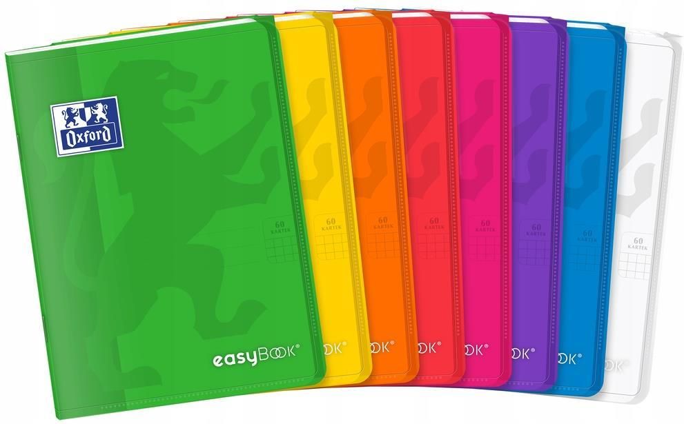 PRODUKT: 3w1 ZESZYT A5/60K KRATKA - EASYBOOK 8 sztuk OXFORD PRODUCENT: Oxford KOD PRODUKTU: 5904017377726 - ZESTAW 8 ZESZYTÓW - Kolekcja Easybook to zeszyty z półprzezroczystą, trwałą polipropylenową okładką oraz przedstawionym wizerunkiem lwa. Na przodzie zeszytu bardzo praktyczna kieszeń na luźne kartki, natomiast na końcu zeszytu teczka na dokumenty, której skrzydło służy również jako zakładka. Śnieżnobiały i idealnie gładki papier Optik Paper o gramaturze 90 g/m2 sprawi, że pisanie w zeszycie będzie przyjemnością. Cechy główne Półprzezroczysta okładka w energicznych kolorach przyciąga uwagę Okładka z polipropylenu odporna na zniszczenia, zalania czy rozdarcia Oprawa na zszywki jest najbardziej popularna ze względu na łatwość użycia Z przodu zeszytu kieszeń na luźne kartki Na końcu zeszytu teczka na dokumenty, której skrzydło służy również jako zakładka Utrzymana w konwencji kolekcji adresówka Cechy dodatkowe Format A5 60 kartek Liniatura kratka z marginesem Papier o gramaturze 90 g/m2 Mix kolorów Śnieżnobiały, idealnie gładki Optik Paper ® -