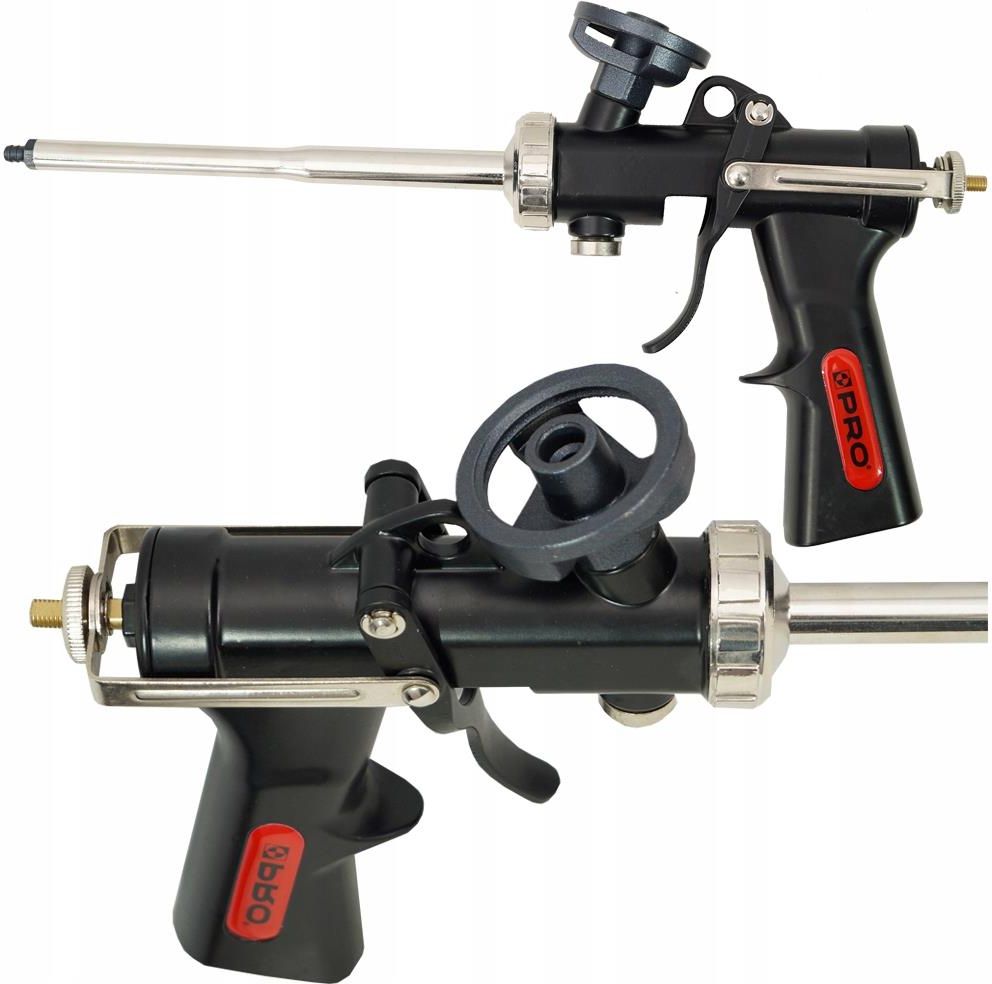 Pistolet do piany montażowej - PRO - BT-05 Pistolet do pianki montażowej PRO BT-05 przeznaczony jest do nakładania pianki PU, która dostępna jest w pojemnikach metalowych z ciśnieniem. Zaletami modelu PRO BT-05 jest solidne wykonanie, ergonomiczny niklowany spust, zawór zwrotny i miedziana igła pokryta teflonem. Wykorzystanie pistoletu ułatwia wykonanie uszczelnień, montażu stolarki okiennej i drzwiowej, wypełnienia szczelin czy izolację ścianek z płyt karton-gips. Pistolet marki PRO został wyposażony w blokadę regulacji przepływu, co nie tylko ułatwia pracę z regulowanym ciśnieniem, ale również pozwala na ponowne użycie pistoletu do 30 dni bez konieczności jego czyszczenia (jeśli pojemnik z pianą jest szczelnie zamocowany) Aluminiowy adapter do pianki, niklowany aluminiowy korpus, oraz system zapobiegający zasychaniu piany to tylko niektóre cechy profesjonalnego pistoletu do piany. BT-05 został wyposażony również w dysze ułatwiające prace w trudno-dostępnych miejscach. Dzięki zastosowaniu pianki w połączeniu z pistoletem powstają duże oszczędności, gdyż pianki pistoletowe są dużo bardziej wydajne niż pianki wężykowe. W zestawie znajdują się również miedziany zawór i klucze do regulacji w wąskich szczelinach. Pistolet jest przeznaczony do nakładania pianki w pojemnikach ciśnieniowych.