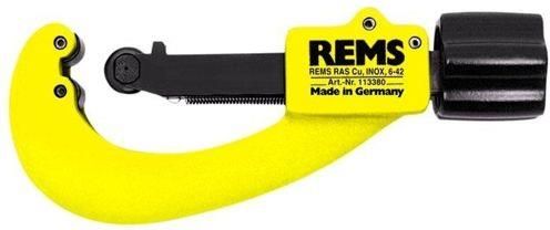 REMS RAS Cu-INOX 3-28 – wytrzymały obciank do cięcia cieńkościennych rur ze stali nierdzewnej, stali węglowej, miedzi i podobnych materiałów. Masywna, stabilna kontrukcja do ciężkiej pracy. Stabilne teleskopowe wrzeciono Długie prowadzenie wrzeciona i specjalnie hartowane rolki dociskowe zapewniają dokładne prowadzenie na rurze, lekkie przestawianie, lekkie precyzyjne i prostopadłe cięcie. Duże pokrętło z metalu umożliwia lekkie przestawianie i cięcie. Szerokie, precyzyjne łożyskowanie kółka tnącego na hartowanej zabezpieczonej przed obrotem osi gwarantuje prostopadłe cięcie. Specjalnie hartowane kółko tnące z niezawodnej, ciągliwo -twardej stali nożowej zapewnia długą trwałość. Kółko tnące jest chronione ogranicznikiem posuwu przed uszkodzeniem przez rolki dociskowe. Zakres dostawy REMS RAS Cu-INOX 3-28 do rur Ø 3–28 mm, 1/8–1.1/8" (113300). Obciank do rur miedzianych, cienkościennych rur ze stali nierdzewnej, cienkościennych rur stalowych, aluminiowych, mosiężnych. Z kółkiem tnącym. W opakowaniu blistrowym.