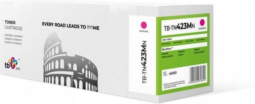 Tb Print Toner do Brother TN423M TB-TN423MN magent Toner TB-TN423MN w kolorze magenta to doskonałe rozwiązanie dla osób poszukujących wydajnych i ekonomicznych alternatyw dla oryginalnych tonerów. Dzięki zastosowaniu technologii regeneracyjnej, ten produkt nie tylko obniża koszty eksploatacji, ale również przyczynia się do ochrony środowiska. Wybierając toner od TB-Print, użytkownicy mogą cieszyć się wysoką jakością wydruków oraz pełną kompatybilnością z drukarkami marki Brother. Kompatybilność z drukarkami Jednym z najważniejszych aspektów przy wyborze tonera jest jego kompatybilność z posiadanym sprzętem. Toner TB-TN423MN magenta jest dedykowany do następujących modeli drukarek marki Brother: Brother MFC L8690CDW, Brother MFC L8900CDW, Brother DCP L8410CDW, Brother HL L8260CDW, Brother HL L8360CDW. Dzięki temu użytkownicy mogą mieć pewność, że ten zamiennik będzie działał bez zarzutu, a ich drukarka będzie w stanie wykorzystać pełen potencjał tonera. Kolor tonera Toner w kolorze magenta jest kluczowy do uzyskania pełnej palety barw przy drukowaniu kolorowych dokumentów oraz grafik. Wydruki oparte na tym zamienniku charakteryzują się intensywnością i żywymi kolorami, co sprawia, że idealnie nadaje się do użytku zarówno w biurze, jak i w domu. Odpowiedni kolor ma ogromne znaczenie dla estetyki materiałów, takich jak prezentacje czy ulotki. Wydajność Wydajność tonera to istotny parametr, który wpływa na koszty eksploatacji. Toner TN423MN oferuje imponującą wydajność na poziomie 4000 stron przy pokryciu 5%, co czyni go jednym z bardziej efektywnych rozwiązań na rynku. Tego rodzaju parametry są niezwykle ważne dla użytkowników, którzy regularnie korzystają z drukarki i chcą zminimalizować częstotliwość wymiany tonera. Typ kasety Model TB-TN423MN jest odpowiednikiem oryginalnego tonera o kodzie TN-423M. Dzięki możliwości zakupu zamiennika, użytkownicy mogą znacząco obniżyć koszty użytkowania drukarki, nie rezygnując przy tym z jakości wydruków. Zestawy regeneracyjne, takie jak ten oferowany przez TB Print, są odpowiedzią na rosnące potrzeby rynkowe, umożliwiając oszczędności bez kompromisów w zakresie jakości. Jakość druku Wysoka jakość druku to kluczowy czynnik, na który zwracają uwagę użytkownicy. Toner magenta zapewnia doskonałą jakość zarówno tekstu, jak i grafik, przy zachowaniu zgodności z rozdzielczością do 1200 dpi. Dzięki temu każdy dokument, niezależnie od jego charakteru, prezentuje się profesjonalnie i estetycznie. Zastosowanie Toner TB-TN423MN magenta znajduje szerokie zastosowanie w drukarkach marki Brother. Idealnie sprawdzi się w druku dokumentów biurowych, materiałów szkoleniowych, prezentacji oraz wszelkiego rodzaju materiałów marketingowych. Wysoka jakość wydruków i ich intensywne kolory pozwalają na profesjonalną prezentację, co może znacząco wpłynąć na wizerunek firmy. Kluczowe zalety tonera Wybierając toner zamiennik, warto zwrócić uwagę na kilka kluczowych zalet, które przekładają się na komfort użytkowania: oszczędność kosztów, wysoka wydajność (4000 stron przy 5% pokryciu), doskonała jakość druku tekstów i grafik, kompatybilność z drukarkami Brother, przyjazność dla środowiska, łatwość w użyciu. Tonery regenerowane, takie jak magenta TB-TN423MN, łączą w sobie wysoką jakość, wydajność oraz oszczędności, co sprawia, że są idealnym wyborem dla każdego, kto ceni sobie profesjonalizm i efektywność w druku.