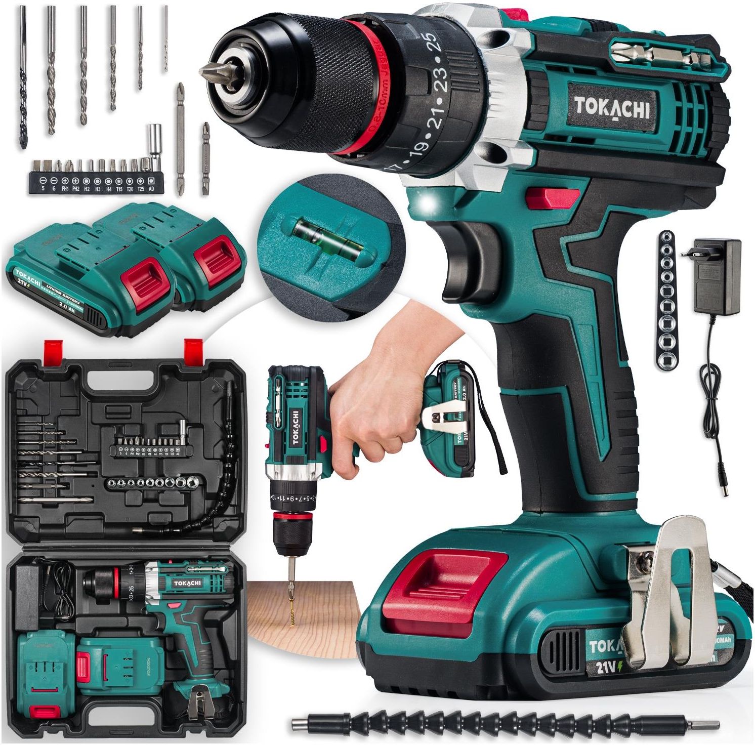 WIERTARKO WKRĘTARKA AKUMULATOROWA UDAROWA WIERTARKA 2xAKU METALOWA GŁOWICA MAJSTERKOWANIE ZACZYNA SIĘ TUTAJ! Wiertarko-wkrętarka | Metalowa głowica | 3 tryby pracy | 2 baterie 2Ah 21V | Duży zestaw akcesoriów | 2 biegi | 25-stopniowe sprzęgło | Prędkość do 1700 rpm | Dioda LED | Schowek na 2 bity | …
