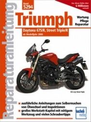 Triumph Daytona 675/R, Street Triple/R: ab Modelljahr 2006 Die Reihe »Reparaturanleitung« ist der professionelle Begleiter für jeden technisch versierten Schrauber. Schritt-für-Schritt-Anleitungen machen Wartung und Reparatur an Motor, Fahrwerk und Fahrzeug-Elektronik zum Kinderspiel. Die …