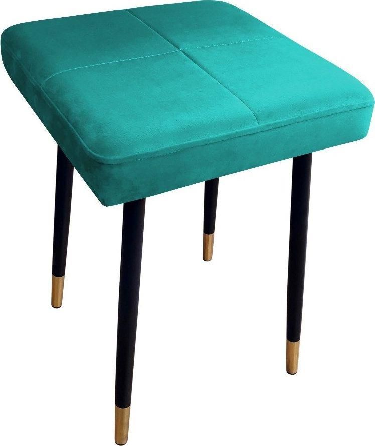 Taboret SQUARE 2 MG VELVET morski tapicerowany jest miękką aksamitną tkaniną oraz posiada stabilną metalową podstawę w kolorze czarnym ze złotymi zakończeniami.