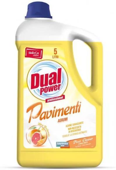 Dual Power Agrumi - płyn do mycia podłóg (5 L) Cytrusowy, uniwersalny płyn do mycia DUAL POWER pozostawia powierzchnie błyszczące i pachnące. Dual Power Płyn do mycia podłóg Agrumi to skoncentrowany środek czyszczący o pojemności 5000 ml, przeznaczony do skutecznego mycia różnych rodzajów podłóg. Produkt charakteryzuje się intensywnym cytrusowym zapachem, który odświeża pomieszczenia.Zalety produktu• Skuteczne czyszczenie: Usuwa nawet trudne zabrudzenia, pozostawiając podłogi czyste i lśniące• Formuła bez spłukiwania: Ułatwia i przyspiesza proces sprzątania• Odkażające działanie: Pomaga w utrzymaniu higieny w pomieszczeniach• Intensywny zapach: Cytrusowy aromat odświeża przestrzeń, nadając jej przyjemny zapach• Uniwersalność: Nadaje się do różnych rodzajów podłóg, takich jak płytki czy paneleSposób użycia1. Dodaj 20 ml płynu na litr wody.2. Umyj podłogę za pomocą mopa lub szmatki.3. Nie wymaga spłukiwania, co ułatwia sprzątanie.Płyn do mycia podłóg Dual Power Agrumi to idealne rozwiązanie dla osób poszukujących skutecznego środka czyszczącego o przyjemnym zapachu. Dzięki formule bez spłukiwania i dużej pojemności 5 litrów, produkt jest ekonomiczny i wygodny w użyciu, zapewniając długotrwałe efekty czystości i świeżości w domu lub biurze. Skład: Deklaracja składników zgodnie z rozporządzeniem w sprawie detergentów (WE 648/2004): Aqua, C11-13 Pareth-10 ,Parfum, Tetrasodium EDTA, Styrene/Acrylates Copolymer, Citral, Limonene, Linalool, Benzisothiazolinone, Methylchloroisothiazolinone/Methylisothiazolinone, Polisiloksan.