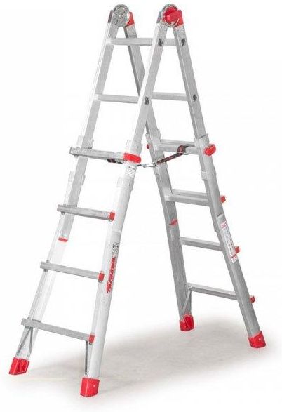 Model. SUPER TELES Super profesjonalna aluminiowa drabina teleskopowa ze stabilizatorami Długość drabiny w zależności od modelu 415 – 586 cm, Wysokość robocza w zależności od modelu 493 – 653 cm, Maksymalne obciążenie 150 kg, Szczeble 3 x 3 cm, Wykonana z aluminium, Składana, Możliwość użytkowania w pozycji dostosowanej do nierównego podłoża, lub podzielona na trzy niezależne elementy. Drabina przeznaczona do prac budowlanych, monterskich i serwisowych. Sprawdzi się w pracach przydomowych. Drabina posiada ergonomiczny uchwyt bezpieczeństwa do zahaczania, odczepiania i wydłużania drabiny. Bezpieczeństwo pracownika podczas pracy gwarantują składane stabilizatory. Opcjonalnie można domówić dodatkową platformę BRTELES z poręczą oraz wysokim na 60 cm ergonomicznym pałąkiem. Mocne paski zabezpieczające ją przed nadmiernym rozstawieniem w pozycji rozstawnej. Stopki z antypoślizgowego tworzywa zapewniają stabilne oparcie drabiny w czasie pracy. Stopki są łatwe do wymiany po zużyciu. Wytrzymałość i stabilność Podłużnice drabiny wykonane zostały z wytrzymałych, otwartych profili aluminiowych o przekroju 55 x 25 mm. Składane stabilizatory utrzymują drabinę w pionie. Wygoda w eksploatacji Drabina może być użytkowana jako rozstawna i przystawna oraz na schodach. Profilowane szczeble o przekroju 3 x 3 cm zamontowano na podłużnicach z zastosowaniem nitowania w technologii lotniczej. Technika ta daje gwarancję trwałości połączenia. Zakończenia szczebli zabezpieczone są estetycznymi plastikowymi zaślepkami. Zmiana wysokości drabiny możliwa jest dzięki zastosowaniu teleskopowego systemu przesuwania jej części. Górny element drabiny przesuwa się w prowadnicach utworzonych przez podłużnice dolnej części. Specjalny ergonomiczny uchwyt umożliwia blokowanie na odpowiedniej wysokości połączenia górnych i dolnych części drabiny. Lekka składana uniwersalna drabina oparta na mocnym profilu nigdy nie zawiedzie użytkownika. Złożona drabina zajmuje niewiele miejsca. W serii Super teles zastosowane są dwa patenty Faraone: Zewnętrze stopnie połączone nitami z zaokrąglonym profilem stosowanymi w technologii lotniczej. Programowalny zawias z aluminium blaszkowego o wysokiej wytrzymałości, który umożliwia uzyskanie: Pozycji nożycowej z ogranicznikiem i blokadą zapobiegającą przypadkowemu złożeniu, Pozycji nożycowej z ogranicznikiem i z zamkiem bez blokady, Pozycji prostej z ogranicznikiem i blokadą zapobiegającą przypadkowemu złożeniu. STABILIZATORY: po zakupie standardowego produktu ( kod produktu TLES.T4S, TELES.T5S, TELES.T6S ) klient w opakowaniu otrzyma krótki żółty stabilizator. Można go samodzielnie zamontować do fabrycznie wywierconych otworów. Przy zakupie modelu TELES.T6SA klient otrzyma w opakowaniu składany, rurowy stabilizator oraz wzmocnienie do pozycji wysuniętej. Montaż samodzielny do do fabrycznie wywierconych otworów.