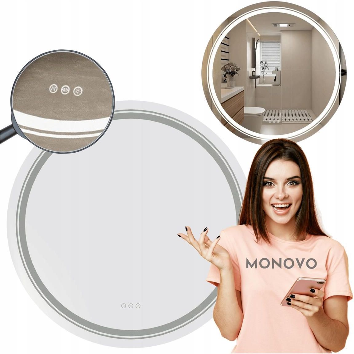 Lustro Łazienkowe Ścienne LED 60 cm z Oświetleniem Okrągłe DOVER 60 HALMAR Lustro Ścienne DOVER 60 od Halmar Materiał: Rama aluminiowa, lustro wykonane ze szkła Kolorystyka: Srebrny Konstrukcja: Okrągła forma Dodatkowe funkcje: Podświetlenie LED, system przeciw parowaniu, funkcja pamięci programów ZALETY Podświetlenie LED – Regulacja jasności i koloru oświetlenia dotykiem Funkcja przeciwparująca – Automatyczne usuwanie kondensatu Kontrola dotykowa – Intuicyjne sterowanie wszystkimi funkcjami Minimalistyczny design – Idealny dla nowoczesnych aranżacji PODŚWIETLENIE LED Jasność i kolor według Twoich potrzeb! Wbudowane oświetlenie LED pozwala na prostą regulację jasności oraz wybór między zimnym a ciepłym odcieniem światła. Idealne zarówno przy makijażu, jak i podczas porannego mycia twarzy – każdy moment staje się częścią luksusowej rutyny. SYSTEM PRZECIW PAROWANIU Nigdy więcej nie martw się parą! Zaawansowany system zapobiegający parowaniu działa automatycznie, usuwając kondensat po kąpieli. To oznacza, że możesz bezpiecznie używać lustra nawet po długim prysznicu – Twoje preferencje są zawsze widoczne. MINIMALISTYCZNY DESIGN Komfort w estetyce! Okrągła forma i srebrna ramka aluminiowa sprawiają, że DOVER 60 doskonale wpisuje się w najnowocześniejsze aranżacje. To element, który harmonijnie współgra z każdym stylem od skandynawskiego do industrialnego . WYMIARY (+/- 1cm) Wysokość: 60 cm Szerokość: 60 cm Głębokość: 4,5 cm ZAPRASZAMY DO ZAKUPU