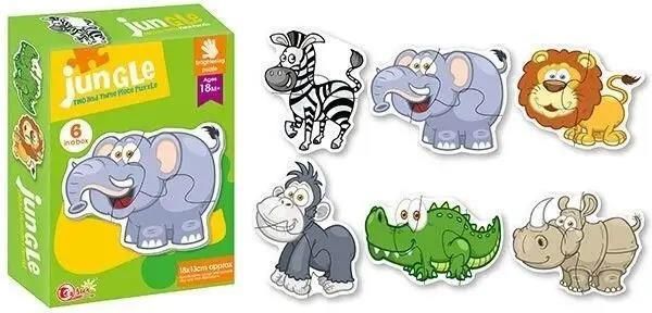 Puzzle 6 obrazków Zwierzęta dzikie rozmiar obrazka 18 x13 cm. w zestawie: zebra, słoń, lew, goryl, krokodyl, nosorożec Producent/osoba odpowiedzialna za bezpieczeństwo produktuCCG Creative Craft GroupArchitronlaan 2-405321 JJ Hedelinfo@ccg.eu+31 (0)73 599 85 66