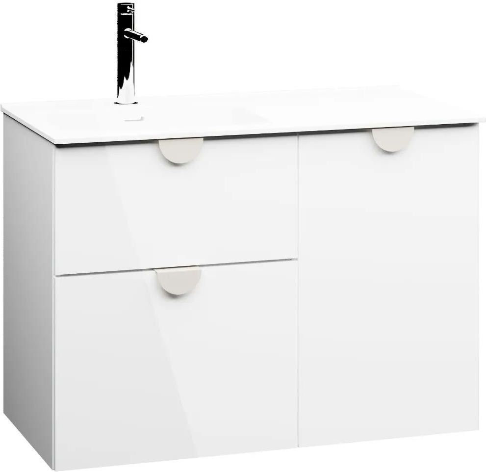 Szafka pod umywalkę COCO 90 cm biały połysk z koszem na pranie