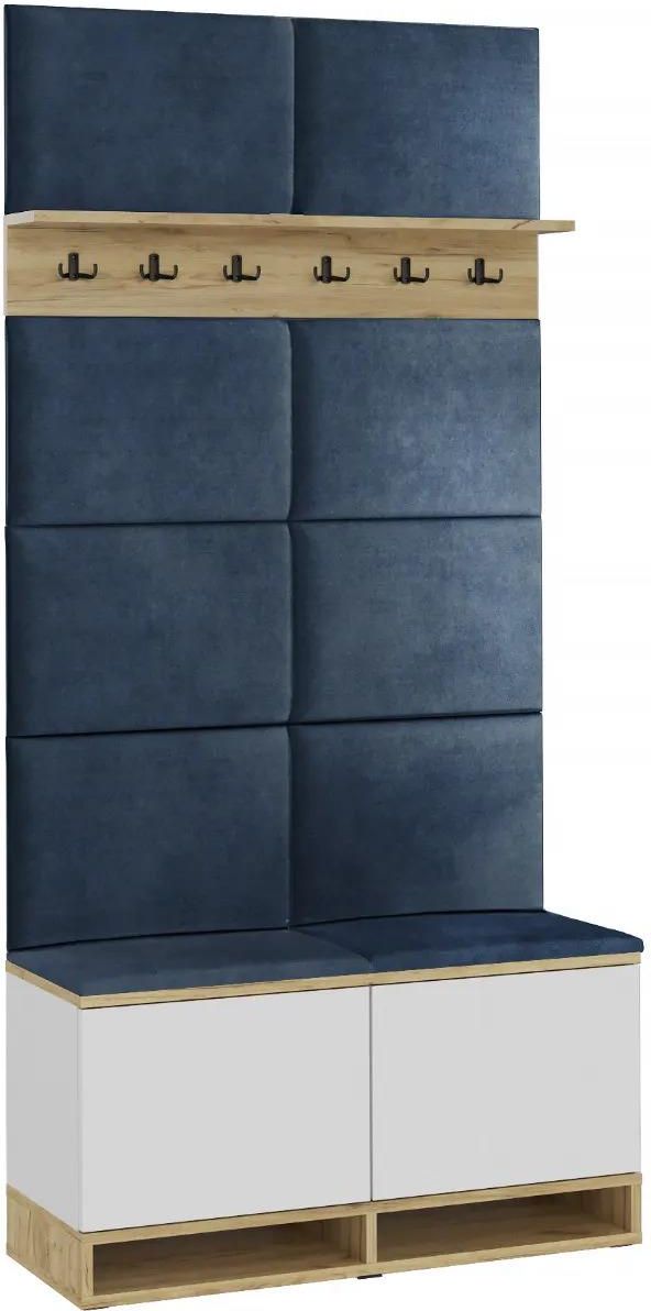 Szafka na buty z siedziskiem i wieszakiem DUBAI biała/dąb craft/granatowa