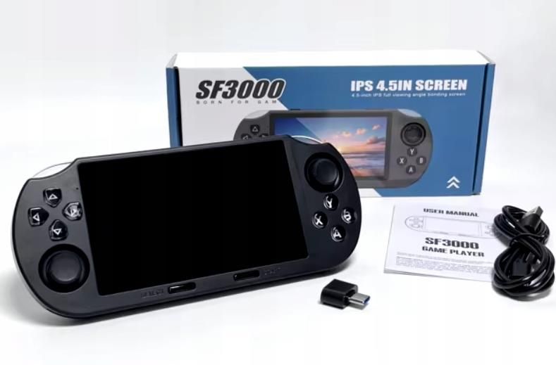 100% NOWE, ORYGINALNE, FABRYCZNIE ZAPAKOWANE Przenośna mini konsola do gier dla dzieci SF3000 RETRO 64GB 20000 GIER Przenośna konsola do gier SF3000 to idealne rozwiązanie dla osób, które szukają wszechstronnej konsoli, która pozwoli wrócić do kultowych gier retro, a jednocześnie zapewni nowoczesne funkcje. Posiada aż 20 000 wbudowanych gier i obsługuje szeroką gamę platform, takich jak PS1, MAME, GBA, ATARI, SFC, MD i wiele innych. Konsola została wyposażona w pełni laminowany wyświetlacz IPS HD 4,5” (854x480) z regulacją jasności, który zapewnia wyrazisty obraz i szerokie kąty widzenia. Antypoślizgowy joystick 360° gwarantuje precyzyjne sterowanie, a ergonomiczna konstrukcja sprawia, że konsola doskonale leży w dłoniach, zapewniając komfort nawet podczas długich sesji gamingowych. Dzięki dwurdzeniowemu procesorowi 1.2G rozgrywka jest płynna i dynamiczna, a wbudowany akumulator 3000 mAh zapewnia nawet 7 godzin działania na jednym ładowaniu. Urządzenie zostało wyposażone w funkcje OTG i OTC, które pozwalają podłączyć dodatkowe akcesoria oraz używać urządzenia jako powerbanku. Ponadto, konsola umożliwia odtwarzanie muzyki oraz filmów, możliwość przeglądania zdjęć i odtwarzanie e-booków, a wbudowana wysuwana podstawka umożliwia wygodne oglądanie treści. To doskonałe rozwiązanie dla fanów retro-gamingu i nie tylko. Świetnie sprawdzi się zarówno w domu, jak i w podróży! Cechy produktu Wyświetlacz IPS HD 4,5" 854x480 (w pełni laminowany)z opcją dopasowania poziomu jasności - zapewnia wysoką jakość obrazu oraz szeroki kąt widzenia Obsługa szerokiej gamy gier - posiada aż 20 000 wbudowanych gier i obsługuje wiele platform, w tym MAME, PS1, FC, SFC, MD, GB, GBC, GBA, PCE, ATARI, SMS, GG, NGPC, WSC i inne Funkcje OTG i OTC - umożliwia podłączanie dodatkowych akcesoriów oraz obsługa funkcji powerbanku Funkcja Key Mapping - pozwala na przypisanie klawiszy według własnych preferencji Joystick antypoślizgowy 360° - zapewnia precyzyjną i komfortową kontrolę ruchów podczas gry Dodatkowe funkcje - możliwość odtwarzania muzyki, filmów, przeglądania zdjęć oraz e-booków Wbudowany akumulator o pojemności 3000 mAh - umożliwia długi czas działania (5-7 godzin) i jest ładowany za pomocą kabla USB-C Wbudowana, wysuwana podstawka/wspornik (z tyłu urządzenia) - ułatwia wygodne oglądanie np. filmów Ergonomiczny design - zapewnia wygodę podczas długich sesji gamingowych. Wyświetlacz IPS HD 4,5" 854x480 (w pełni laminowany)z opcją dopasowania poziomu jasności Konsola została wyposażona w wysokiej jakości ekran, który oferuje doskonałą jakość obrazu z żywymi kolorami i wysokim kontrastem. Dzięki zastosowanej technologii IPS zapewnia szerokie kąty widzenia, co pozwala na komfortową rozgrywkę niezależnie od pozycji ekranu. Dodatkowo, ekran gwarantuje także bardzo szybki czas reakcji oraz nie powoduje zmęczenia oczu. Pełna laminacja eliminuje efekt odbić i poprawia klarowność wyświetlanego obrazu, co szczególnie sprawdza się podczas dynamicznych scen w grach. Ponadto, użytkownik ma możliwość regulacji poziomu jasności, co pozwala dostosować ekran do różnych warunków oświetleniowych, zarówno w jasnym otoczeniu, jak i w ciemniejszych pomieszczeniach. Obsługa szerokiej gamy gier Konsola zapewnia dostęp do aż 20 000 wbudowanych gier oraz obsługuje szeroką gamę platform, co czyni ją niezwykle wszechstronnym urządzeniem dla miłośników gier retro. Dzięki kompatybilności z systemami takimi jak: MAME (arcade), PS1 (PlayStation 1), FC (Nintendo Entertainment System), SFC (Super Nintendo), MD (Sega Mega Drive), GB, GBC, GBA (Game Boy, Game Boy Color, Game Boy Advance), PCE (PC Engine), ATARI (różne systemy Atari), SMS, GG (Sega Master System, Game Gear), NGPC (Neo Geo Pocket Color) oraz WSC (WonderSwan Color), użytkownik może cieszyć się kultowymi tytułami z różnych epok gamingu. Obsługa tak wielu platform sprawia, że konsola jest idealnym wyborem zarówno dla graczy, którzy chcą powrócić do gier swojego dzieciństwa, jak i dla tych, którzy pragną odkrywać klasyczne hity sprzed lat. Funkcje OTG i OTC Funkcja OTG (On-The-Go)umożliwiapodłączanie różnych urządzeń peryferyjnych, takich jak zewnętrzne kontrolery, klawiatury, myszki czy pendrive’y. Dzięki temu użytkownicy mogą rozszerzyć funkcjonalność konsoli i dostosować ją do swoich potrzeb, np. grając wygodnie na dodatkowym padzie lub przenosząc pliki bezpośrednio na urządzenie. Natomiast dzięki funkcji OTC (On-The-Charge), konsola może działać jako powerbank, pozwalając na ładowanie innych urządzeń, jak np. smartfony lub słuchawki bezprzewodowe. To szczególnie przydatne w podróży, gdy dostęp do źródła zasilania jest ograniczony. Funkcja Key Mapping Funkcja Key Mapping pozwala na swobodne przypisywanie przycisków według własnych preferencji, co zapewnia większy komfort i personalizację rozgrywki. Użytkownik może dowolnie konfigurować ustawienia klawiszy, co jest szczególnie przydatne w grach wymagających precyzyjnego sterowania lub w przypadkach, gdy domyślne układy przycisków nie są wygodne. Antypoślizgowy joystick 360° Wysokiej jakości joystick antypoślizgowy oferuje pełen zakres ruchu w zakresie 360 stopni, dzięki czemu gracz może precyzyjnie sterować postaciami i obiektami, co jest szczególnie istotne w dynamicznych grach. Dodatkowe funkcje multimedialne Konsola oferuje szeroki zakres dodatkowych funkcji rozrywkowych, takich jak: Odtwarzanie muzyki - możliwość słuchania ulubionych utworów w różnych formatach, co czyni ją również świetnym przenośnym odtwarzaczem audio. Oglądanie filmów - wsparcie dla popularnych formatów wideo umożliwia oglądanie filmów i seriali na wygodnym ekranie IPS HD Przeglądanie zdjęć - użytkownik może wyświetlać zapisane obrazy i zdjęcia Czytanie e-booków - obsługa plików tekstowych sprawia