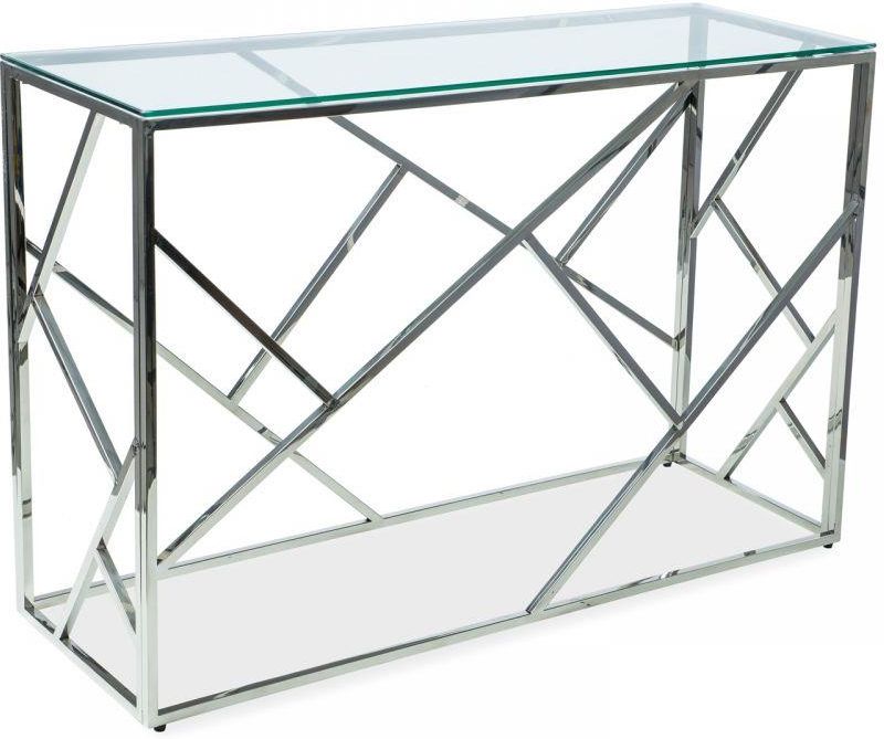 Konsola Escada C szkło/chrom Nowoczesna i efektowna konsola to idealny dodatek do stylowego mieszkania. Konsola zapewni piękny wygląd wnętrza. Metalowa, chromowa podstawa gwarantuje stabilność, a jej futurystyczny design stanie się wspaniałą dekoracją. Transparentny blat wykonany z wytrzymałego …