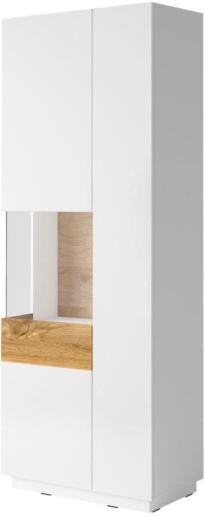 Silke Witryna 2-drzwiowa Lewa Biały Połysk / Dąb Wotan Witryna Silke 2D Lewa łączy w sobie nowoczesność i elegancję, oferując przeszklone drzwi oraz system "push to open". Cztery funkcjonalne półki, modny design Matera/Dąb Wotan i możliwość dokupienia oświetlenia LED. Wymiary: Szerokość (cm): 80 …