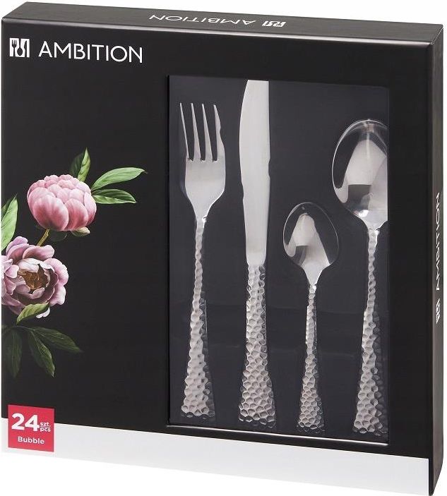 Ambition 24 X Sztućce Nierdzewne Bubble Zdobione Obiadowe Zestaw Na 6 Osób (43375) Bartoszyce