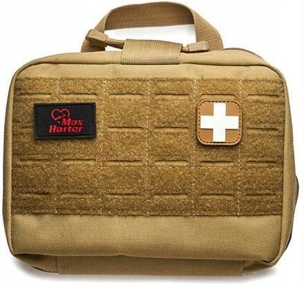 Awaryjna APTECZKA TURYSTYCZNA Model Rozszerzony Kolor Piaskowy MAXHARTER Producent: MAX HARTER Apteczka turystyczna to niezbędny zestaw każdego turysty wybierającego się zarówno na górski szlak jak i kajaki czy po prostu rekreacyjny wypad. Zawiera starannie dobrane indywidualne wyposażenie składające się głównie z produktów medycznych pozwalające rozwiązać wiele kryzysowych sytuacji i skutecznie podjąć działania ratownicze. Apteczka rozszerzona TR to produkt dedykowany dla nauczycieli wycieczek szkolnych przewodników turystycznych rodzin z dziećmi lub po prostu jako zbiorowa apteczka dla kilkuosobowych grup. Skład wyposażenia: Rękawiczki diagnostyczne nitrylowe - 10 szt. Maseczka do RKO z filtrem - 1 szt. Opatrunek z wkładem chłonnym 5 x 7,2 cm - 4 szt. Opatrunek z wkładem chłonnym 10 x 10 cm - 2 szt. Siatka opatrunkowa nr 3 długość 1 m - 1 szt. Siatka opatrunkowa nr 6 długość 1 m - 1 szt. Paski do zamykania ran 3 x 75 mm (op 5 sztuk) - 1 szt. Paski do zamykania ran 12 x 100 mm (op 6 sztuk) - 1 szt. Przylepiec tkaninowy bez opatrunku 2,5 cm x 5 m - 1 szt. Plaster na odciski 19 mm x 76 mm - 4 szt. Plaster na odciski 25 mm x 76 mm - 2 szt. Pęseta jednorazowa - 1 szt. Chusta trójkątna włókninowa - 2 szt. Szyna usztywniająca 46 cm - 1 szt. Nożyczki ratownicze Black Front PRO - 1 szt. Opaska elastyczna 12 cm x 4 m - 3 szt. Opaska dziana 10 cm x 4 m - 3 szt. Gaza opatrunkowa jałowa 1 m² - 2 szt. Kompres gazowe jałowe 10 x 10 cm 4 - szt. Koc ratunkowy NRC (folia izotermiczna) - 4 szt. Żel schładzający o pojemności 120ml - 1 szt. Światło chemiczne Light Stick - 1 szt. Kleszczołapki - 1 szt. Ponczo przeciwdeszczowe - 1 szt. Opaska uciskowa staza taktyczna Black Front - 1 szt. Marker permanentny - 1 szt. Apteczka wraz z panelem rzepowym systemu Molle - 1 szt. Gumki (troki) mocujące szybkiego montażu - 2 szt. Saszetka na zestaw: Saszetka Trauma Responder (TR) to futerał zaprojektowany na rozbudowane apteczki pierwszej pomocy wyposażone w produkty medyczne gotowe do użycia względem większej ilości osób Mimo niewielkich rozmiarów produkt jest bardzo kompaktowy i mieści dużą ilość wyposażenia co sprawia że stanowi ciekawą alternatywę dla podręcznych toreb opatrunkowych Konstrukcja zapewnia natychmiastowy i intuicyjny dostęp do całego wyposażenia W środku można znaleźć wiele kieszeni dedykowanych na opatrunki liczne gumy z podwójnymi przeszyciami o różnym rozstawie kieszeń z przeźroczystym oknem na drobne wyroby (np. plastry paski do zamykania ran itp.) czy też specjalne miejsce dedykowane na rękawiczki Wszystko to sprawia że użytkownik ma szerokie możliwości na dowolną konfigurację wyposażenia według własnych preferencji Tylna część saszetki posiada zrywalny panel z systemem mocowania typu MOLLE dzięki czemu można ją zamontować w prosty i szybki sposób na innym przystosowanym do tego ekwipunku Na przodzie saszetki znajdują się również tzw laser cuty w systemie MOLLE Można na nich zamontować najbardziej potrzebne produkty np. nożyczki opaskę zaciskową itp za pomocą troków szybkiego montażu które są na wyposażeniu w ilości 2 sztuk Produkt posiada gumową plakietkę z krzyżem który jest międzynarodowym symbolem dla zestawów apteczkowych Do uszycia saszetki wykorzystuje się komponenty najwyższej jakości Zastosowany materiał to wysokogatunkowy Nylon o bardzo wysokim splocie 1000D Charakteryzuje się on odpornością na uszkodzenia i rozdarcia co gwarantuje wieloletnie i bezproblemowe użytkowanie Niełamliwe zamki błyskawiczne pochodzą z firmy YKK a solidne i trwałe klamry dostarcza marka Nexus. Dane techniczne: Wymiary produktu: 26 cm x 19 cm x 10 cm (wysokość / szerokość / głębokość) Materiał: wysokogatunkowy Nylon 1000D Niełamliwe zamki błyskawiczne YKK Solidne klamry NEXUS