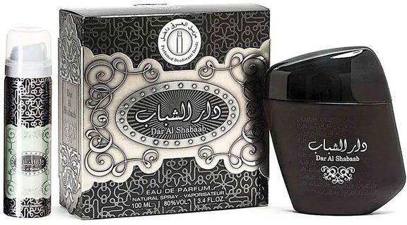ARD AL ZAAFARAN DAR AL SHABAAB ZESTAW WODA PERFUMOWANA + DEZODORANT MĘSKI Rodzaj zapachu: cytrusowe, orientalne Nuty głowy: cytryna, szałwia Nuty serca: balsam tolu, cynamon, czarny kardamon, pralina Nuty bazowe: ambra, drzewo różane, paczula Rodzaj produktu: ZESTAW: woda perfumowana + dezodorant …