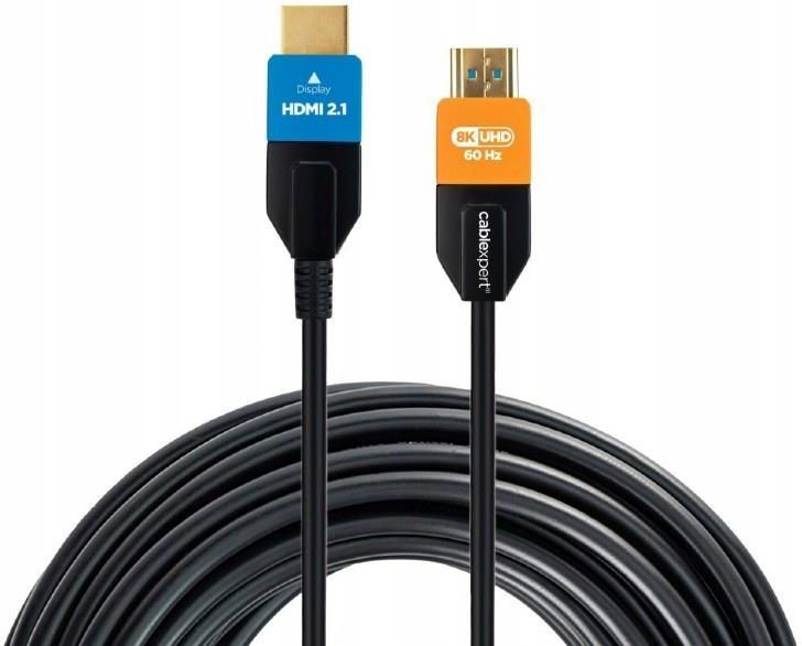 KABEL OPTYCZNY HDMI 2.1 AOC 8K PRZEWÓD ŚWIATŁOWODOWY UHD 8K 60Hz 30M GEMBIRD 8716309129091 KABEL HDMI 2.1 8K 60Hz OPTYCZNY ULTRA High Speed AOC 30m Aktywny kabel optyczny HDMI (AOC) wykorzystuje technologię światłowodową do przesyłania cyfrowego sygnału HDMI. Oznacza to, że sygnał może być przenoszony znacznie dalej niż przy użyciu tradycyjnego kabla miedzianego (do 100 m) i zmniejsza ryzyko zakłóceń EMI / RFI. Kable HDMI AOC mają również dedykowane przewody miedziane w środku, więc nie wymaga zewnętrznego źródła zasilania. Najważniejsze cechy kabla Nowoczesny kabel HDMI w technologi optycznej AOC Technologia przesyłania obrazu w standardzie HDMI 2.1 zapewnia przepustowość do 48 Gb/s Obsługuje rozdzielczość 8K 60Hz Przewód światłowodowy o długości 30 metrów Funkcjonalność:EDID, CEC. HEC, HARC, HDR, Dolby Vision/Dolby ATMOS Dynamiczny HDR Wysokiej jakości metalowe złącza oznaczone kolorami Kompatybilny ze wszystkimi urządzeniami obsługującymi HDMI UWAGA! Kabel optyczny jednostronny! Podczas podłączania należy zwrócić uwagę na napis " Source" - źródło oraz "Display"- koniec Za pomocą kabla HDMI 2.1 8K AOC można podłączyć Telewizory(*obsługujące rozdzielczość 8k) – umożliwia oglądanie filmów, programów telewizyjnych i gier w najwyższej dostępnej rozdzielczości. Konsole do gier (np. PlayStation 5, Xbox Series X) – zapewnia graczom niezrównane doświadczenia z gier dzięki szybkiemu przesyłaniu danych i wsparciu dla rozdzielczości 8K oraz HDR. Odtwarzacze Blu-ray – umożliwia odtwarzanie filmów z ultra wysoką rozdzielczością, zapewniając kinową jakość obrazu w domowym zaciszu. Komputery i laptopy z wyjściem HDMI 2.1 – pozwala na podłączenie do monitorów i telewizorów 8K, oferując niespotykaną dotąd jakość obrazu dla grafików, projektantów czy graczy komputerowych. Projektory – umożliwia wyświetlanie obrazów i prezentacji w bardzo wysokiej rozdzielczości, co jest szczególnie istotne w profesjonalnych zastosowaniach, takich jak sale konferencyjne czy kina domowe. Urządzenia AV, takie jak amplitunery – zapewnia wysoką jakość przesyłanego dźwięku i obrazu, co jest kluczowe dla miłośników kina domowego i wysokiej jakości audio. Czym różni się standardowy kabel HDMI od kabla HDMI AOC? Standardowy kabel HDMI i kabel HDMI AOC (Active Optical Cable) różnią się podstawowymi cechami, które wpływają na ich wydajność, zastosowanie oraz cenę. Standardowe kable HDMI wykorzystują przewodzenie elektryczne do transmisji sygnałów audio i wideo między urządzeniami. Są one najczęściej stosowane na krótkich dystansach, do około 5 metrów, ponieważ na dłuższych odcinkach sygnał może ulec degradacji. Z kolei kable HDMI AOC to innowacyjne rozwiązanie, które wykorzystuje technologię światłowodową do przesyłania danych. Dzięki temu mogą one bez problemu przesyłać sygnały na dużo większe odległości, nawet do 100 metrów, bez znaczącej utraty jakości. Kable AOC są bardziej odporne na zakłócenia elektromagnetyczne i oferują wyższą przepustowość, co jest szczególnie ważne przy przesyłaniu sygnałów w wysokiej rozdzielczości, takich jak 4K czy 8K. Specyfikacja Typ: Ultraszybki AOC Obsługa wersji HDMI: HDMI 2.1 (i wszystkie poprzednie wersje) Złącza: 2 x męskie typu A, pozłacane Przepustowość: 48 Gb/s Obsługiwane rozdzielczości: wszystkie rozdzielczości do UHD 8K (60 Hz) Obsługuje kinowy format obrazu 21:9 Obsługuje funkcję Deep Color, do 16 bitów na kanał Przestrzenie kolorów: obsługiwana YUV 4:4:4 Obsługiwane funkcje: EDID, CEC. HEC, HARC, HDR, Dolby Vision/Dolby ATMOS HDCP: wersja 1.4 / 2.2 Materiał przewodnika: światłowód Oplot: nylon Długość: 30 m Standard HDMI 2.1 Standard HDMI 2.1 to najnowsza ewolucja interfejsu High-Definition Multimedia Interface (HDMI), który został oficjalnie zaprezentowany przez HDMI Forum w listopadzie 2017 roku. Jest to znaczący krok naprzód w porównaniu do poprzedniej wersji, HDMI 2.0, wprowadzając szereg innowacji i ulepszeń, które odpowiadają na rosnące potrzeby zarówno konsumentów, jak i producentów sprzętu elektronicznego. Jednym z kluczowych ulepszeń, które wprowadza HDMI 2.1, jest znacznie wyższa przepustowość, która osiąga do 48 Gb/s, w porównaniu do 18 Gb/s w HDMI 2.0. Dzięki temu możliwe jest przesyłanie obrazu w wyższej rozdzielczości, do 10K, oraz lepsza jakość obrazu dzięki głębszemu kolorowi (do 16 bitów na kanał) i wyższym częstotliwościom odświeżania, nawet do 120 Hz w 4K i 8K. To otwiera drzwi do bardziej immersyjnych doświadczeń w grach, filmach i innych zastosowaniach multimedialnych.
