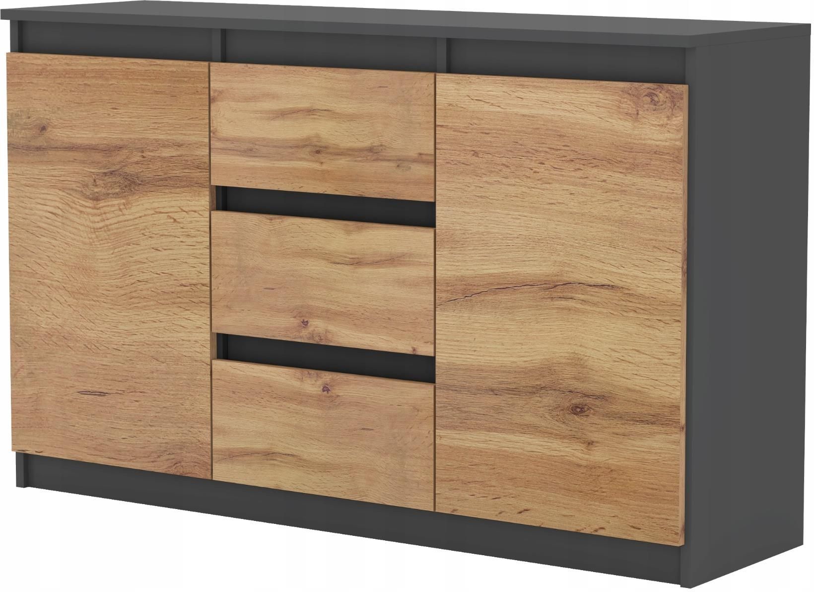 Duza Komoda z szufladami ANTRACYT WOTAN Szafka AGA 120CM bezuchwytowa do Salonu Bartoszyce