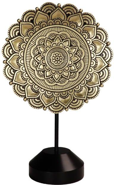 Figurka Mandala Owalna - dekoracja buddyjska - 35cm - 44032FJHElegancka figurka przedstawiająca złotą mandalę na czarnej podstawie. To wyjątkowa dekoracja, która wprowadzi do Twojego wnętrza atmosferę spokoju i duchowości. Informacje o produkcie:Wymiary: 10,7 x 8,5 x 28 cmMateriał: polyresinKolor: złoty, czarnyStyl: nowoczesny, glamour