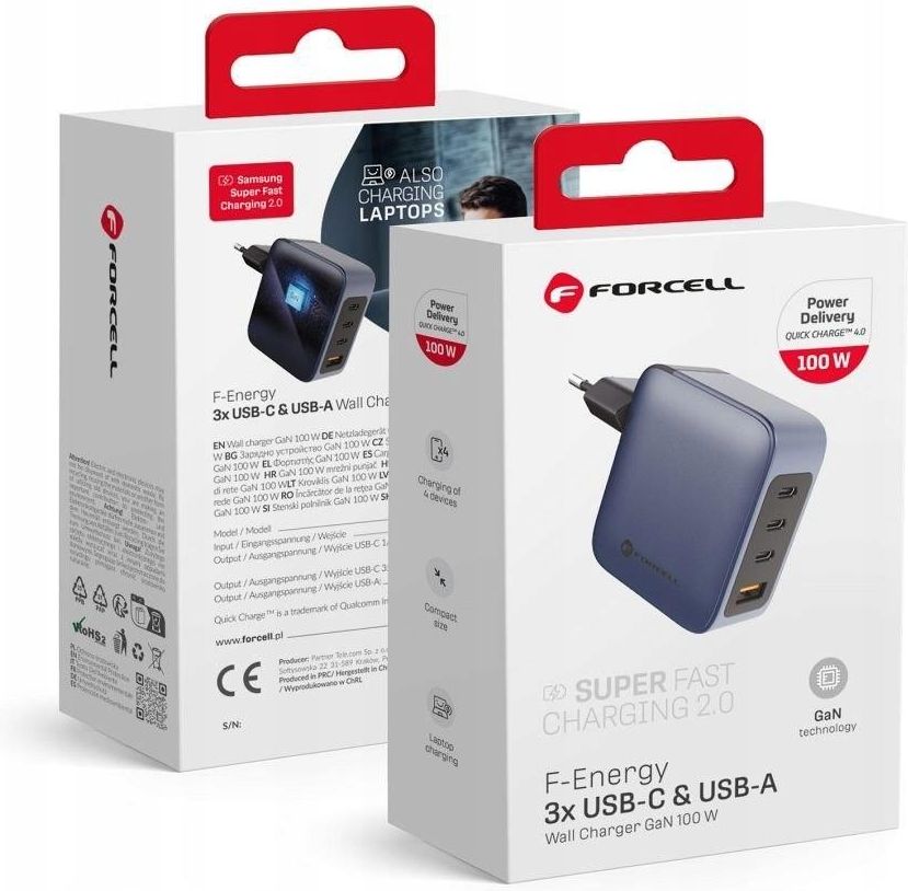 Forcell F-Energy Ładowarka Sieciowa GaN 100W z portami: 3x Usb C i A Bartoszyce