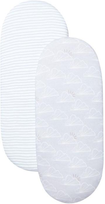 Shnuggle Prześcieradło do Kosza Mojżesza 2 szt. Grey Numer kat. SHN-SHT-GRY Prześcieradło do kosza Mojżesza Shnuggle to super miękki must have każdej wyprawki dla noworodka. Prześcieradło dla dziecka wykonane w 100%b z miękkiej bawełny zapewni komfort maluszkowi przez cały rok – latem, zapewniając przyjemną cyrkulację powietrza, a zimą – ogrzewając dziecko. Prześcieradło pasuje do standardowych koszy Mojżesza i gondol. Zestaw zawiera: - 2 sztuki prześcieradła, w tym 1 x szara chmurka i 1 x szare paski Kompatybilne z materacem używanym zarówno w koszach Dreami, jak i Classic. Materiał: 100% bawełna