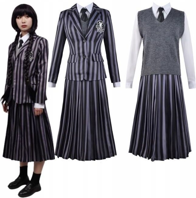 STRÓJ KOSTIUM MUNDUREK WEDNESDAY ADDAMS COSPLAY Ta oferta dotyczy rozmiaru 164/170 M (z metki L) Opis produktu: Fantastyczny strój odzwierciedlający postać Wednesday, Zestaw składa się z marynarki, spódnicy, koszuli, swetra, krawata i skarpetek, Strój wykonany w odcieniach koloru czarnego i …