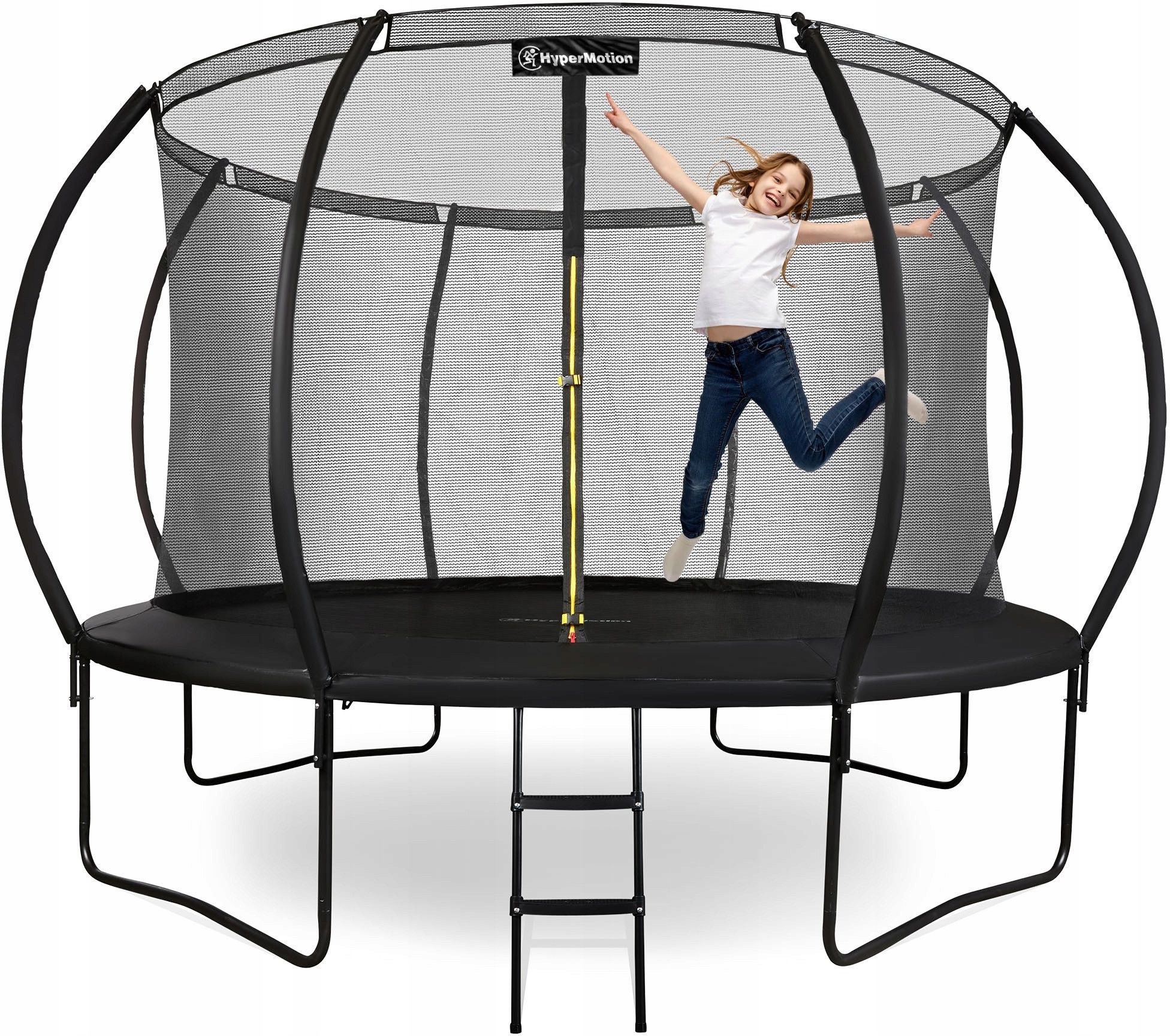 Trampolina ogrodowa XXL dla dzieci HyperMotion - 366 cm 12FT - z drabinką i siatką wewnętrzną - do domu i ogrodu - 150kg max Marka: HyperMotion Model: TRAMPOLINE 12FT Nie ma lepszego sposobu na spożytkowanie nadmiaru energii niż skakanie! Trampolina z dwustopniową drabinką i siatką wewnętrzną to niezawodny przepis na rozrywkę, a także atrakcyjna dla smyków forma aktywności fizycznej. Zapewnij swojemu dziecku fantastyczną zabawę w domu lub w ogrodzie! Wyposażona w siatkę ochronną trampolina sprawdzi się zarówno na zewnątrz, jak i w pomieszczeniach zamkniętych. Posiada trwałą, stabilną konstrukcję, a jej montaż z pewnością nie sprawi Ci problemu! Główne cechy trampolina wykonana z wytrzymałych, wysokogatunkowych materiałów wysoka odporność na warunki atmosferyczne i promienie UV właściwości szybkoschnące i wodoodporne nowoczesny, minimalistyczny design w kształcie dyni dzięki ocynkowanym sprężynom o wysokim naprężeniu, trampolina zapewnia doskonałą siłę odbijania w zestawie z drabinką antypoślizgową ułatwiającą bezpieczne wejście dołączona siatka ochronna zapobiega przypadkowym upadkom wyposażona w 4 podwójne nóżki w kształcie litery W - wyjątkowa stabilność i bezpieczeństwo wszystkie sprężyny i rurki są pokryte grubą pianką, co chroni dziecko przed obrażeniami w kolorze czarnym szybki i łatwy montaż odpowiednia dla dzieci powyżej 3. roku życia Maksymalna ochrona Pręty z włókna szklanego zapewniają odpowiednie napięcie siatki ochronnej, co sprawia, że jest ona idealnie naprężona. Dzięki temu siatka doskonale amortyzuje upadki i zachowuje swoją formę, gwarantując najwyższy poziom bezpieczeństwa. Twoje dzieci mogą skakać bez obaw, ciesząc się maksymalną ochroną przy każdym skoku! Bezpieczeństwo i stabilna konstrukcja Gruba osłona sprężyn oraz solidna osłona słupków siatki zapewniają bezpieczną zabawę. HyperMotion – najlepszy wybór! Nasze produkty wyróżniają się solidnością, bezpieczeństwem i łatwością montażu. Dzięki przemyślanej konstrukcji oraz wysokiej jakości materiałom oferujemy rozwiązania, które są stabilniejsze, wygodniejsze i trwalsze niż w przypadku konkurencji. Wybierając HyperMotion, stawiasz na pewność i komfort użytkowania. Antypoślizgowa powierzchnia drabinki Solidna i bezpieczna konstrukcja dzięki 4 podwójnym podnóżkom Bezproblemowy i szybki montaż Ocynkowane sprężyny o wysokim naprężeniu Bezpieczna zabawa dla całej rodziny Najwyższa jakość na lata Trampolina, dzięki konstrukcji z wysokiej jakości stali ocynkowanej, cechuje się trwałością i wytrzymałością na intensywne użytkowanie oraz warunki atmosferyczne. Zastosowanie materiałów szybkoschnących umożliwia błyskawiczne wysychanie po deszczu lub kontakcie z wodą. Duża powierzchnia do skakania - aż 325 cm! Trampolina została zaprojektowana w taki sposób, aby zapewnić użytkownikom maksymalną przestrzeń do skakania. Mata trampoliny została wykonana z materiału o dużej gęstości zapewniając wyjątkowo silne odbicia oraz doskonałą amortyzację podczas każdego lądowania. Trampolina dla dzieci to źródło niesamowitej radości i satysfakcji, której dostarcza smykom aktywność fizyczna. Dzięki niej maluszki wzmocnią swoje mięśnie i rozwiną umiejętności ruchowe. Skakanie angażuje bowiem wszystkie partie ciała. To także skuteczny sposób na poprawę nastroju, redukcję stresu, pozbycie się napięcia, a w rezultacie doskonałe samopoczucie! Specyfikacja wymiary: 366 (śr.) x 265 cm wymiar obszaru do skakania: 325 cm wysokość od ziemi do maty (batut): ok. 89 cm wysokość siatki zabezpieczającej: ok. 176 cm wymiary opakowań: A: 148 x 45 x 17 cm, B: 148 x 45 x 20 cm łączna waga: 53,8 kg materiał: stal ocynkowana i malowana proszkowo, PVC, PE, PP maksymalne obciążenie: 150 kg liczba sprężyn: 64 Bezpieczeństwo Trampolina została zaprojektowana i wykonana w oparciu o aktualne wymogi bezpieczeństwa. Spełnia normę EN71-14: 2018. Wytrzymała siatka wewnętrzna chroni dzieci przed wypadnięciem, a solidna konstrukcja stanowi gwarancję stabilności. GALERIA
