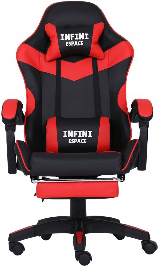Fotel Gamingowy z podnóżkiem INFINI ESPACE Red - regulowane oparcie Dane techniczne i parametry Maksymalna wysokość: 125 cm Regulacja wysokości w zakresie 10 cm Maksymalna szerokość z podłokietnikami: 66 cm Wysuwany, miękki podnóżek Wysokość oparcia: 71 cm Szerokość oparcia: 56 cm Głębokość siedziska: 49 cm Szerokość siedziska: 50 cm Maksymalna wysokość siedziska: 52 cm Minimalna wysokość siedziska: 42 cm Szerokość stojaka: 67 cm Kolor: czarno - czerwony Miękkie podłokietniki Dwie poduszki premium Regulowany kąt oparcia Regulacja wysokości, obrotowy 360 stopni Ze względów technologicznych wymiary mogą się różnić 1-4 % Wyjątkowa kombinacja stylu, wygody i funkcjonalności - oto Fotel Gamingowy marki INFINI, model ESPACE. Przygotuj się na niezapomniane doznania podczas długich sesji gamingowych lub relaksujących chwil spędzonych przed ekranem. Design: Fotel INFINI ESPACE zachwyca minimalistycznym, a zarazem nowoczesnym designem. Kolorystyka biało-czarna nie tylko dodaje elegancji, ale także sprawia, że pasuje do wielu różnorodnych aranżacji wnętrz. Komfort: Ergonomiczna konstrukcja fotela oraz dwie regulowane poduszki zapewniają niezrównany komfort podczas każdej sesji. Dzięki możliwości regulacji oparcia oraz wysuwanego podnóżka, możesz dostosować pozycję do swoich preferencji, zapewniając optymalne wsparcie dla kręgosłupa i relaksującymi możliwością wypoczynku. Funkcjonalność: INFINI ESPACE to nie tylko fotel - to centrum dowodzenia twoją rozgrywką. Dzięki precyzyjnym regulacjom możesz dostosować ustawienia do swoich potrzeb, zapewniając optymalną pozycję nawet podczas najbardziej intensywnych sesji. Niezależnie od tego, czy skupiasz się na rozgrywce czy odpoczywasz po męczącym dniu, INFINI ESPACE zawsze Cię wspiera. Gąbka średnio twarda – optymalny komfort w fotelu gamingowym INFINI Espace W fotelu gamingowym INFINI Espace zastosowano gąbkę średnio twardą, która gwarantuje idealny balans pomiędzy wygodą a wsparciem. Ta starannie dobrana gąbka zapewnia optymalny komfort podczas długich sesji gamingowych oraz stabilne podparcie dla ciała. Dzięki swoim właściwościom gąbka dostosowuje się do naturalnych krzywizn ciała, wspierając plecy i kręgosłup. Jej elastyczność umożliwia skuteczne amortyzowanie nacisku, co sprawia, że fotel jest wygodny zarówno podczas intensywnej gry, jak i codziennej pracy przy biurku. Kluczową zaletą zastosowanej gąbki jest jej trwałość – zachowuje pierwotny kształt przez długi czas, co przekłada się na niezawodne użytkowanie fotela przez lata. INFINI Espace to doskonały wybór dla każdego gracza, który poszukuje komfortu i jakości na najwyższym poziomie. Fotel gamingowy INFINI Espace został zaprojektowany z myślą o intensywnym użytkowaniu, zapewniając niezrównaną trwałość i komfort. Wzmocniona konstrukcja stanowi fundament tego modelu, co czyni go idealnym wyborem dla graczy spędzających długie godziny przed ekranem. Fotel został wyposażony w zaawansowany mechanizm podnoszenia i regulacji wysokości, który nie tylko zwiększa wygodę, ale także zapewnia długowieczność użytkowania. Dzięki solidnemu siłownikowi gazowemu, INFINI Espace gwarantuje stabilność i płynność regulacji, nawet przy większym obciążeniu. Mechanizm ten jest dodatkowo zabezpieczony przed nadmiernym zużyciem, co czyni go odpornym na intensywne użytkowanie. Regulacja wysokości umożliwia dostosowanie pozycji siedzenia do indywidualnych potrzeb, zapewniając ergonomiczną postawę i redukując obciążenie kręgosłupa. Rama fotela została wzmocniona w strategicznych punktach, co zwiększa jego wytrzymałość i stabilność. Dzięki temu Fotel INFINI wytrzymuje duże obciążenia, zachowując przy tym pełną funkcjonalność. To rozwiązanie sprawia, że fotel jest nie tylko trwały, ale również niezwykle komfortowy, zapewniając użytkownikowi pełne wsparcie podczas gry lub pracy. Nowoczesny design oraz wykorzystanie wysokiej jakości materiałów dopełniają całości, czyniąc INFINI ESPACE zarówno praktycznym, jak i stylowym elementem każdego stanowiska gamingowego. Fotel gamingowy INFINI ESPACE został wyposażony w zaawansowany mechanizm płynnej regulacji oparcia, który pozwala na pełne dostosowanie kąta nachylenia do indywidualnych preferencji użytkownika. Dzięki temu rozwiązaniu fotel zapewnia maksymalny komfort zarówno podczas intensywnej gry, jak i chwil relaksu. Płynna regulacja umożliwia precyzyjne ustawienie oparcia w szerokim zakresie, co pozwala na znalezienie idealnej pozycji, niezależnie od tego, czy chcesz siedzieć w pełnym skupieniu, czy rozłożyć się wygodnie po długim dniu. Mechanizm działa cicho i płynnie, eliminując jakiekolwiek szarpnięcia, co dodatkowo podnosi komfort użytkowania. Oparcie zostało zaprojektowane z myślą o ergonomii, wspierając naturalne krzywizny kręgosłupa. Dzięki płynnej regulacji można łatwo dopasować fotel do pozycji siedzącej lub półleżącej, co sprzyja redukcji napięcia mięśniowego i zapobiega zmęczeniu. Mechanizm jest solidnie wykonany i odporny na zużycie, co gwarantuje niezawodność nawet przy częstych zmianach ustawień. INFINI Espace to fotel, który łączy funkcjonalność z wygodą, oferując graczom możliwość pełnej kontroli nad pozycją siedzenia. To idealne rozwiązanie dla osób ceniących komfort i wsparcie na najwyższym poziomie. Zalety regulowanego kąta oparcia Dostosowanie do Preferencji. Możliwość regulacji pozwala użytkownikowi dostosować kąt nachylenia oparcia do własnych preferencji. Bez względu na to, czy wolisz bardziej pionową pozycję podczas pracy, czy też chcesz zrelaksować się podczas oglądania filmu, INFINI ESPACE dostosuje się do twoich potrzeb. Ergonomiczne Wsparcie. Regulacja oparcia pozwala na optymalne dopasowanie fotela do kręgosłupa użytkownika, co zapewnia ergonomiczne wsparcie podcza