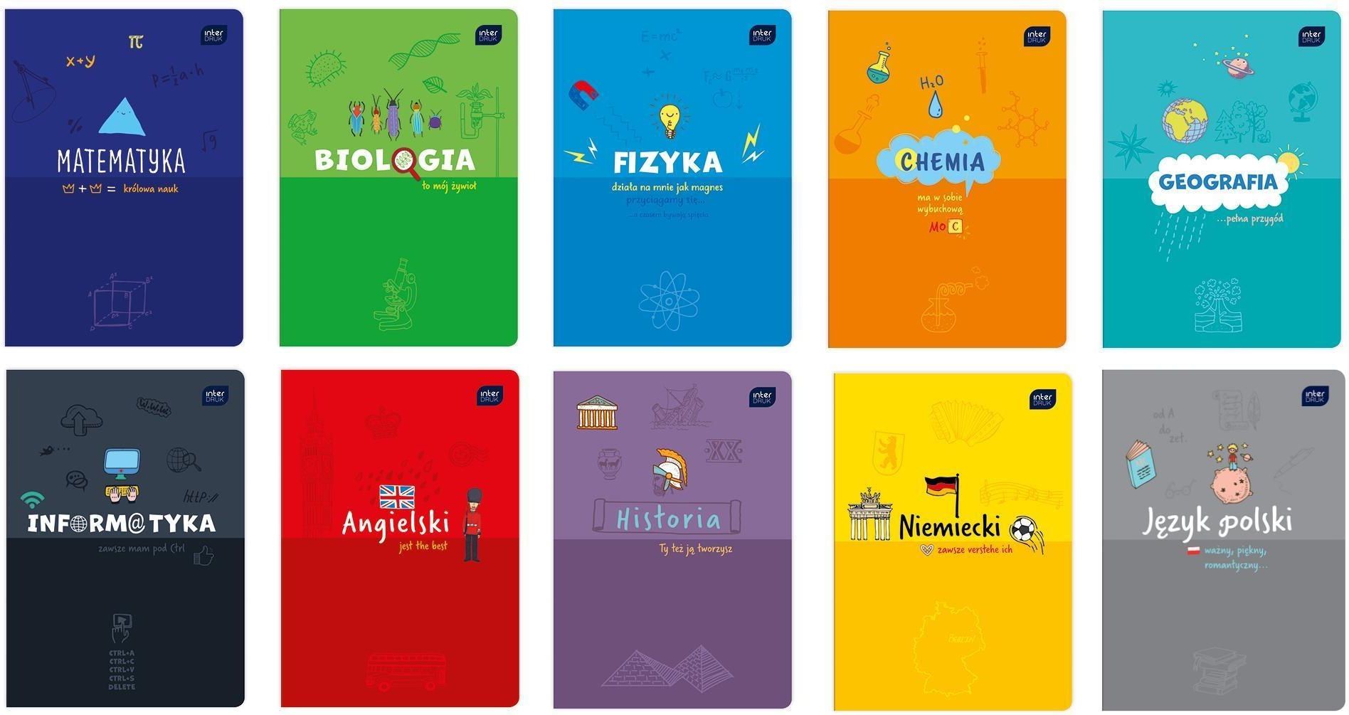 Komplet zeszytów tematycznych ze ściągą Hybrid INTERDRUK A5 60 kartek 70g (10 przedmiotów) • komplet 10 zeszytów przedmiotowych skompletowanych według jednego, spójnego wzoru przedstawionego na zdjęciach • miękka okładka pokryta lakierem hybrydowym • produkt z oświadczeniem FSC • zeszyty posiadają …