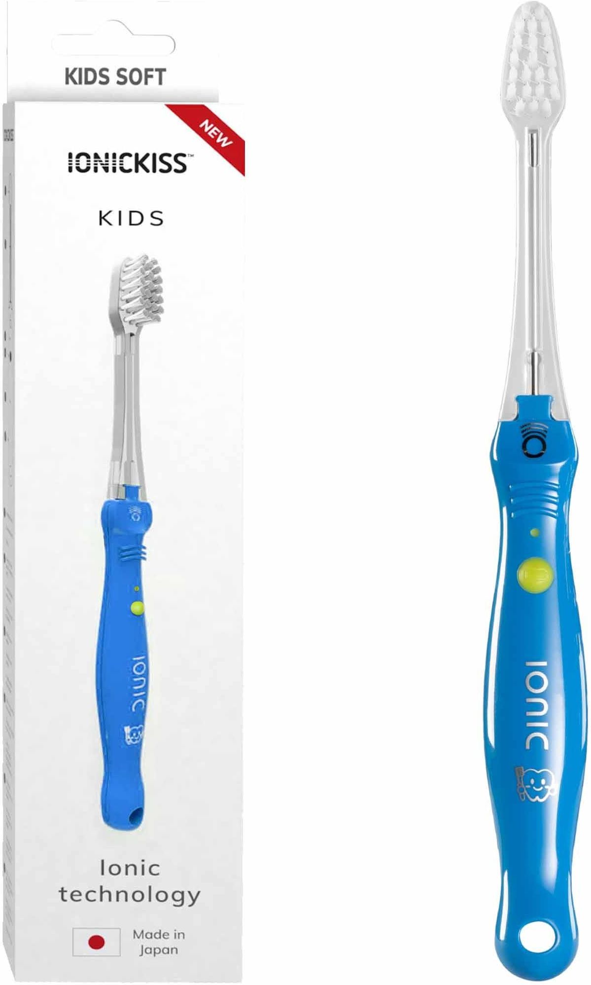 Jonowa szczoteczka do zębów IONICKISS Kids Miękka Niebieska Najbardziej efektywna manualna szczoteczka do zębów dla dzieci dzięki zastosowaniu technologii jonowej, która znacząco wpływa na usuwanie płytki nazębnej. Szczoteczka IONICKISS Kids jest najlepszym wyborem dla naszych pociech, gdyż nie wytwarza hałasu by nie powodować dodatkowego stresu, dodatkowo nie wymaga użycia pasty do zębów co zapobiega jej połykaniu a co najważniejsze zapewnia niezrównaną skuteczność w walce z płytką nazębną. Technologia Jonowa: Zastosowanie technologii jonowej w szczoteczkach IONICKISS polega na wygenerowaniu jonów, które niczym magnes powodują przyciągnięcie płytki nazębnej z powierzchni zębów do końcówki szczoteczki. Wytworzone jony nie tylko zwalczają płytkę nazębną, ale również skutecznie przeciwdziałają zapaleniu dziąseł i chorobom przyzębia, co zostało udowodnione klinicznie. Dodatkowo technologia jonowa pozwala na efektywne czyszczenie zębów bez konieczności stosowania pasty do zębów. Made in Japan Firma IONICKISS oferuje produkty wykonane w Japonii o najwyższym standardzie jakości, stale je udoskonalając poprzez zastosowanie w nich najnowszych rozwiązań technologicznych. Dodatkowe informacje: IONICKISS Kids zawiera niewymienną baterię, która przy używaniu dwa razy dziennie przez dwie minuty starcza na około rok. Wodoodporny korpus pozwala na zanurzenie go wodzie do głębokości 1 metra nawet do 30 minut. Czerwona kontrolka świetlna przy naciśnięciu świecąc się na czerwono pozwala na potwierdzenie, że szczoteczka jest dalej w pełni funkcjonalna. Wymienna końcówka w zestawie: IONICKISS ŚredniaWymienna końcówka do szczoteczek IONICKISS Kids. Przeznaczona dla dzieci. Kształt końcówki szczoteczki został dostosowany tak, by wygodnie i skutecznie czyścić zęby dziecka. Dedykowana dla dzieci od 5 roku życia. Umożliwia delikatne a za razem skuteczne czyszczenie. Posiada antybakteryjne włosie. Wyprodukowana w Japonii, przy zachowaniu najwyższych standardów jakości. Stopień twardości włókien: Miękki Kolor końcówki: Biały przezroczysty Kolor włosia: Biały Dentyści zalecają wymianę końcówki szczoteczki co 2-3 miesiące i zawsze po chorobie zakaźnej. Gwarancja 12 miesiące W zestawie: Rękojeść szczoteczki Końcówki: 1szt.