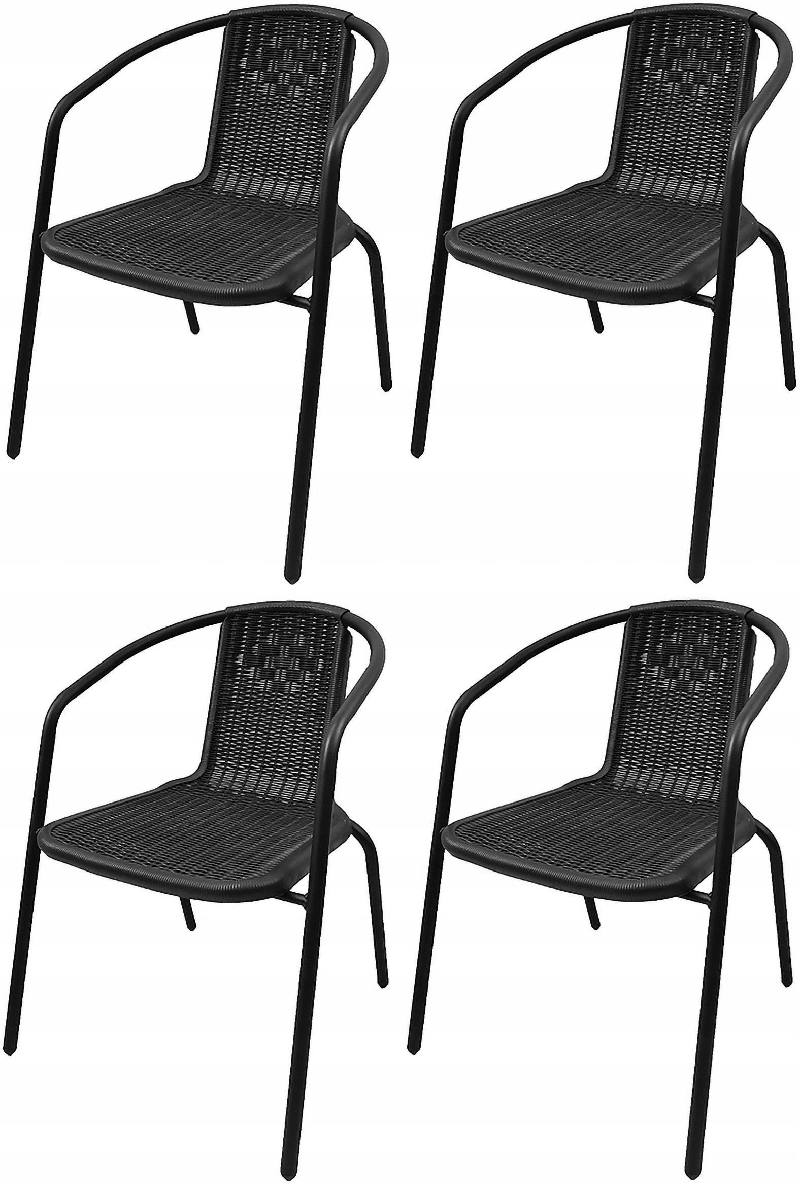 4X KRZESŁO OGRODOWE MOCNE WYGODNE DO OGRODU NA TARAS LORETTO CZARNY CO WYRÓŻNIA NASZ PRODUKT Stylowy i wygodny design łączący trwałe materiały, takie jak malowana proszkowo stal i wytrzymałe tworzywo sztuczne imitujące ratan. Wszechstronne zastosowanie - krzesło nadaje się do użytku w altanach, na …