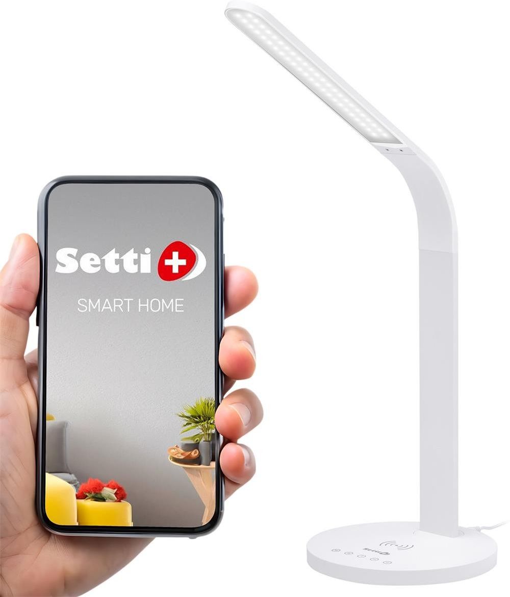 Lampa biurkowa SETTI+ to nie tylko nowoczesne wzornictwo ale i nowoczesna technologia dzięki której dopasujesz dokładnie oświetlenie do swoich preferencji. Każdy poziom jasności i temperatury światła białego 2700-6500K z łatwością ustawisz, nie ruszając się z fotela.
