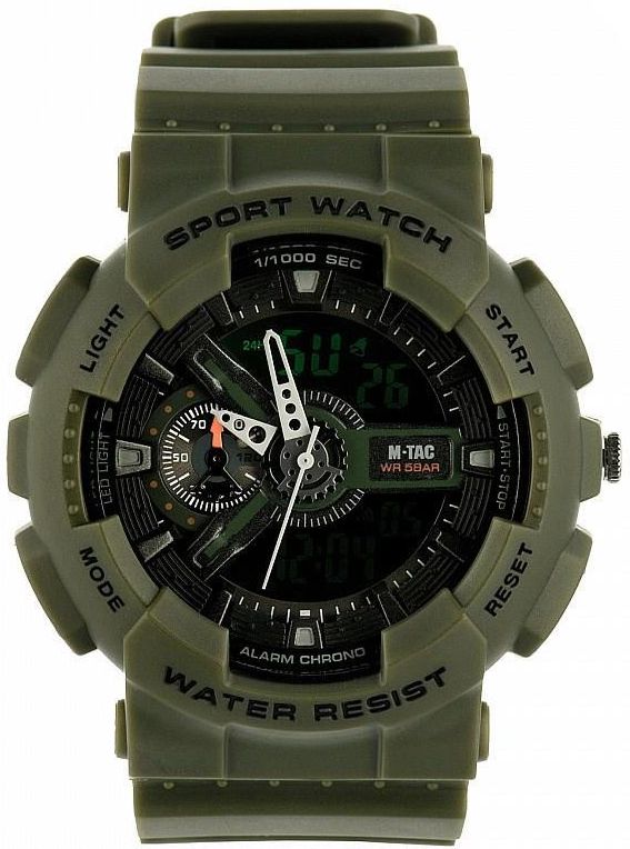 M-Tac 50006001 Zegarek sportowy M-Tac 50006001 to doskonały wybór dla osób aktywnych, które cenią sobie zarówno praktyczność, jak i estetykę. To nie tylko narzędzie do pomiaru czasu, ale także modny dodatek, który podkreśla charakter noszącego. Model ten wyróżnia się na tle innych dzięki swoim unikalnym cechom, które sprawiają, że jest idealnym towarzyszem w codziennym życiu oraz podczas różnorodnych aktywności na świeżym powietrzu. Typ zegarka Model M-Tac 50006001 to analogowy zegarek sportowy, który łączy nowoczesne technologie z tradycyjnym stylem. Zegarki analogowe charakteryzują się wskazówkami pokazującymi czas na tarczy, co nadaje im elegancki wygląd. Mimo rosnącej popularności modeli cyfrowych, ten zegarek zyskuje uznanie dzięki swojej prostocie i łatwości odczytu, co czyni go idealnym wyborem zarówno na co dzień, jak i w trakcie aktywności na świeżym powietrzu. Mechanizm Zegarek M-Tac 50006001 wyposażony jest w automatyczny mechanizm, który zapewnia niezawodność i precyzyjność. Dzięki temu zyskuje na funkcjonalności oraz prestiżu, co jest szczególnie ważne dla osób ceniących sobie wysoką jakość. Mechanizmy automatyczne są znane ze swojej długowieczności oraz minimalnej potrzeby konserwacji, co stanowi ogromny atut dla użytkowników. Materiał koperty Koperta zegarka wykonana jest z poliwęglanu, co zapewnia mu odpowiednią trwałość oraz odporność na uszkodzenia mechaniczne. Poliwęglan jest materiałem lekkim, co sprawia, że akcesorium nie obciąża nadgarstka, a jednocześnie jest wystarczająco wytrzymałe, aby wytrzymać różnego rodzaju wstrząsy. Szkiełko Zegarek wyposażony jest w akrylowe szkiełko, które charakteryzuje się dużą przejrzystością oraz odpornością na zarysowania. Należy jednak pamiętać, że szkło akrylowe jest bardziej podatne na zarysowania w porównaniu do szkła szafirowego, co warto mieć na uwadze, decydując się na ten model. Styl i design Sportowe wzornictwo zegarka M-Tac 50006001 przyciąga wzrok i doskonale wpisuje się w nowoczesne trendy. Jego czarna tarcza w połączeniu z zielonym paskiem tworzy harmonijną całość, która jest zarówno elegancka, jak i praktyczna. Taki zegarek z łatwością można dopasować do różnych stylizacji — od casualowych po bardziej sportowe. Pasek lub bransoleta Akcesorium jest wyposażone w silikonowy pasek, który jest nie tylko stylowy, ale także niezwykle komfortowy w noszeniu. Silikonowy pasek jest materiałem odpornym na wilgoć i skrajne temperatury, co sprawia, że zegarek sprawdzi się w każdych warunkach. Dodatkowo, pasek jest regulowany, co pozwala na idealne dopasowanie go do nadgarstka. Wodoszczelność Jednym z kluczowych atutów zegarka M-Tac 50006001 jest jego wodoszczelność, która wynosi 50 metrów. Dzięki temu użytkownik nie musi obawiać się przypadkowego zamoczenia zegarka podczas codziennych czynności, takich jak mycie rąk czy deszcz. Taki poziom wodoszczelności sprawia, że model ten można także nosić podczas pływania w płytkich wodach. Funkcje Zegarek M-Tac 50006001 oferuje szereg funkcji, które zwiększają jego funkcjonalność i użyteczność: stoper, alarm, automatyczny kalendarz, podświetlenie LED. Dodatkowe cechy Warto również podkreślić, że zegarek M-Tac 50006001 jest unisex, co oznacza, że jest odpowiedni zarówno dla mężczyzn, jak i kobiet. Taka uniwersalność zwiększa jego atrakcyjność na rynku, przyciągając szeroką grupę odbiorców. Wymiary Zegarek ma średnicę koperty wynoszącą 4,6 cm oraz grubość 1,4 cm, co może być uznawane za standardowe w przypadku zegarków sportowych. Tego rodzaju wymiary sprawiają, że model ten będzie odpowiedni dla większości nadgarstków. Długość paska wynosząca 22 cm umożliwia wygodne dopasowanie do różnych rozmiarów, co czyni go uniwersalnym wyborem dla różnych użytkowników.