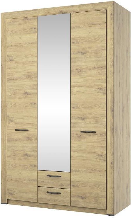 ►Szafa Trzydrzwiowa z Lustrem Garderoba Dąb Navarra Sapori 3D2S ► Szafa jest niezbędną częścią każdej sypialni, pokoju młodzieżowego czy też garderoby. Drążek, półki a także dwie szuflady umieszczone we wnętrzu mebla pozwolą na umieszczenie sporej ilości ubrań, które schowane nie będą rzucać się w …