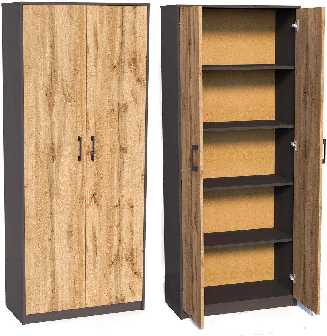 REGAŁ SZAFA z DRZWIAMI 180x74 cm SZAFKA PÓŁKA na KSIĄŻKI SEGREGATORY GRAFIT + WOTAN / R005 Regał R005 to nowoczesny mebel o wszechstronnym zastosowaniu, idealny do przechowywania w salonie, sypialni, pokoju dziecięcym, młodzieżowym czy przedpokoju. Wyprodukowany w Polsce przez doświadczony zakład …