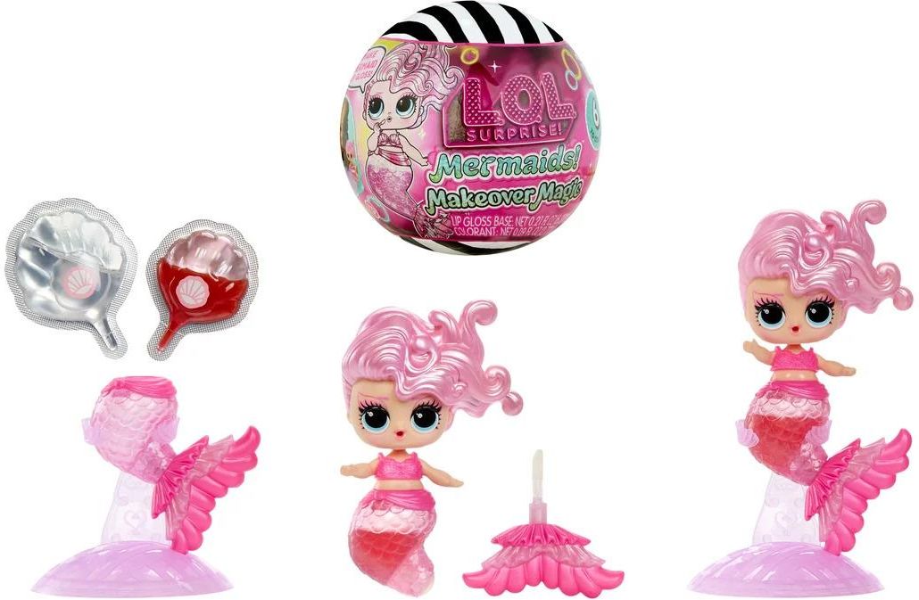 Dive into a world of enchantment and creativity with the L.O.L. Surprise Mermaids! Makeover Magic Tots. This delightful set is perfect for young fashionistas and aspiring makeup artists who love a splash of fun and a touch of magic in their playtime! Unveil the excitement of a new play pattern where you can create your own mermaid makeup, not just for your Tot, but for yourself too! The set includes two vibrant colors that can be mixed to craft wearable makeup, allowing you to match your look with your adorable mermaid doll. It's a perfect opportunity for kids to express their creativity and style. The magic doesn't stop there! Each mermaid's tail starts off clear, but once filled with the DIY makeup, it transforms into a beautiful new color. This innovative feature adds an extra layer of fun, as kids can watch their mermaid evolve with each makeover session. But wait, there's more! The L.O.L. ball is not just a packaging marvel; it doubles as a fishbowl or a hot tub display for your charming mermaids. Whether they're splashing around in water or lounging in their stylish ball, these mermaids are ready for any adventure, be it playtime or bath time. Designed with portability in mind, the makeup can be conveniently stored inside the doll, making it easy to take your mermaid on the go. Whether you're heading to a friend's house or embarking on a family trip, your mermaid companion is ready to join the fun. Encourage imaginative play and creativity with the L.O.L. Surprise Mermaids! Makeover Magic Tots. It's more than just a toy; it's an experience that combines fashion, beauty, and endless fun. Perfect for children who love to explore and express their unique style, this set is sure to make waves in any playroom.