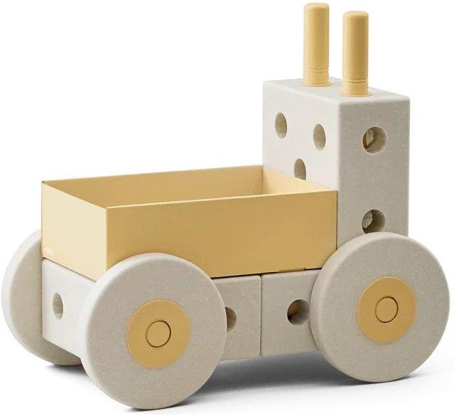 MODU Pchacz 3w1 to kreatywna, pobudzająca wyobraźnię dziecka zabawka, która może pełnić rolę wózka, taczki czy stołka. Może być rozbudowany o inne elementy systemu MODU. Pierwsze kroki. Wielkie możliwości. MODU – Pchacz 3w1 to więcej niż klasyczny jeździk dla malucha. Wspiera naukę chodzenia, zachęca do samodzielności i kreatywnej zabawy. Dzięki dużym, lekkim kołom i solidnej konstrukcji dzieci z łatwością prowadzą go przed sobą, ćwicząc równowagę i koordynację. Może pełnić funkcję pchacza, taczki, stołka lub wózka do przewożenia zabawek – a po rozbudowie staje się częścią większej konstrukcji z innych zestawów MODU. To funkcjonalna zabawka, która rośnie razem z dzieckiem. Zestaw zawiera 3 × klocki MODU 14 × łączniki 4 × piankowe koła 1 × pudełko na zabawki (z tektury FSC) Rekomendowany wiek Odpowiedni dla dzieci od 6 miesięcy do 3. roku życia. Certyfikaty i materiały Pianka EPP w 100% nadająca się do recyklingu Tworzywo ABS – dopuszczone do kontaktu z żywnością Pudełko na zabawki: tektura z certyfikatem FSC Certyfikaty: CE, EN 71 (zgodność z europejską normą dla zabawek) Produkcja: Francja / Dania Parametry Liczba elementów: 22 Wymiary: 48 × 27 × 44 cm Maksymalne obciążenie: 50 kg Czyszczenie: wilgotna ściereczka; możliwość mycia w zmywarce Gwarancja: 5 lat Dlaczego warto wybrać MODU – Pchacz 3w1? Idealny do nauki chodzenia i rozwoju motoryki dużej Pełni wiele funkcji – pchacz, wózek, taczka, stołek i więcej Pojemne pudełko mieści ulubione zabawki dziecka Możliwość rozbudowy i łączenia z innymi zestawami MODU Bezpieczne materiały i minimalistyczny, ponadczasowy design Producent: MODU ApS Vester Voldgade 102 st. tv 1552 Copenhagen