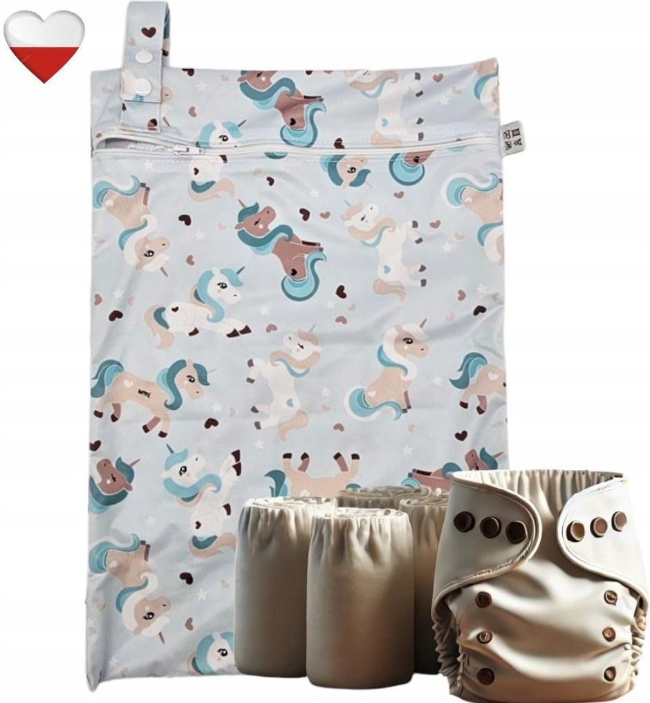WOREK na Pieluszki PUL JEDNOROŻCE MIĘTOWE Worki na Pieluszki NappiMe Wielofunkcyjny Worek na Pieluszki – Idealny na Mokre i Brudne Ubrania Praktyczne rozwiązanie dla rodziców i każdego, kto potrzebuje niezawodnej ochrony przed wilgocią i zapachami! Worek na pieluszki z zalaminowanego materiału PUL to idealny wybór do przechowywania brudnych lub mokrych rzeczy – od pieluszek po odzież sportową czy kąpielową. Jego szczelna konstrukcja chroni przed przeciekaniem i zatrzymuje nieprzyjemne zapachy, zapewniając higienę i wygodę w każdej sytuacji. Specyfikacja produktu Materiał: zalaminowany PUL (100% poliester z wodoodporną powłoką) Rozmiar:30 x 45 cm Cechy: szczelny, wielorazowy, lekki i łatwy do przenoszenia Zalety worka na pieluszki Nieprzepuszczalny i szczelny Dzięki wykonaniu z zalaminowanego materiału PUL worek skutecznie zapobiega przeciekaniu oraz blokuje wilgoć i zapachy. To niezawodna bariera, która pozwala na higieniczne przechowywanie wilgotnych lub zabrudzonych rzeczy. Wielofunkcyjność Idealny zarówno jako worek na pieluszki wielorazowe, jak i na brudne lub mokre ubrania dziecięce, stroje kąpielowe, ręczniki czy odzież sportową. Przydatny w podróży, na basenie, spacerze czy podczas codziennych aktywności. Ekologiczny i wielorazowy Worek można używać wielokrotnie, co jest przyjazne dla środowiska i bardziej ekonomiczne niż jednorazowe opakowania. Kompaktowy i łatwy w użyciu Worek jest lekki i zajmuje niewiele miejsca, dzięki czemu możesz mieć go zawsze przy sobie. Zamykany na zamek błyskawiczny, co zapewnia szczelność i wygodę użytkowania. Łatwy w utrzymaniu czystości Zalaminowany materiał PUL nie chłonie plam i można go łatwo wyczyścić, co sprawia, że jest idealnym rozwiązaniem do codziennego użytku. Sposób prania i pielęgnacji Aby worek służył jak najdłużej, zaleca się przestrzeganie kilku prostych zasad: Pranie w pralce do 60°C – używaj delikatnych detergentów, najlepiej w proszku. Unikaj płynów zmiękczających, które mogą uszkodzić wodoodporną warstwę PUL. Zakaz wirowania – aby uniknąć uszkodzenia laminowanej powłoki, nie wiruj worka. Suszenie przez rozwieszenie – worek powinien być suszony w pozycji rozwieszonej. Nie używaj suszarki bębnowej ani nie wystawiaj go na bezpośrednie działanie wysokiej temperatury. Nie wybielać ani nie stosować agresywnych środków czyszczących, aby zachować szczelność i trwałość materiału. Dlaczego warto wybrać worek na pieluszki z PUL? To praktyczne, ekologiczne i higieniczne rozwiązanie, które doskonale sprawdzi się zarówno dla rodziców, jak i dla osób aktywnych. Ochrona przed przeciekaniem i zapachami, łatwość w użytkowaniu oraz wielorazowość czynią go niezastąpionym towarzyszem codziennych wyzwań. Zamów teraz i ciesz się wygodą oraz niezawodnością, jaką oferuje worek na pieluszki z PUL!