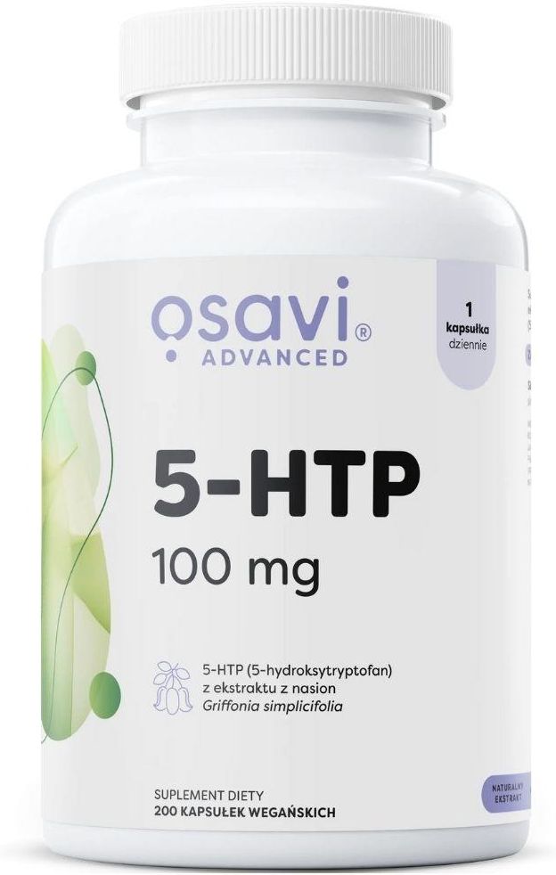 OSAVI 5-HTP (Advanced), 100mg - 200 vegan caps 5-HTP (Advanced), 100mg SUPLEMENT DIETY 200 kapsułek wegańskich / Ilość porcji jednostkowych: 200 W dziennej porcji (1 kapsułka) Ekstrakt z nasion Afrykańskiej Czarnej Fasoli DER 30:1: 333.33 mg standaryzowany na 30% 5-HTP: 100 mg SKŁADNIKI: Ekstrakt z nasion afrykańskiej czarnej fasoli (Griffonia simplicifolia), otoczka (hydroksypropylometyloceluloza), inulina. UWAGA!: Suplementy diety nie mogą być stosowane jako substytut zróżnicowanej diety. Dla zachowania prawidłowego stanu zdrowia należy prowadzić zróżnicowaną dietę i zdrowy tryb życia. SPOSÓB UŻYCIA: 1 kapsułka, najlepiej przed snem. ZALECANA PORCJA DZIENNA: 1 kapsułka. Nie należy przekraczać zalecanej dziennej porcji. SPOSÓB PRZECHOWYWANIA: Przechowywać w suchym i ciemnym miejscu, w temperaturze pokojowej, w sposób niedostępny dla małych dzieci. PRZECIWWSKAZANIA: Produkt nie jest przeznaczony dla dzieci, kobiet w ciąży i karmiących piersią. Przed zastosowaniem preparatu należy skonsultować się z farmaceutą lub lekarzem, jeśli planujesz ciążę, jesteś pod nadzorem lekarskim lub cierpisz na alergie pokarmowe. DYSTRYBUTOR: Olivit Sp. z o.o., ul. Blacharska 11, 61-006 Poznań, tel. +48 61 102 11 63 NAJLEPIEJ SPOŻYĆ PRZED KOŃCEM: Data i numer partii na opakowaniu. KRAJ POCHODZENIA / MARKA: Unia Europejska / Osavi EAN: 5904139926703 Suplement diety w postaci kapsułki twardej zawierającej ekstrakt z nasion fasoli czarnej standaryzowany na 5-HTP (5-hydroksytryptofan), który jest prekursorem serotoniny. 5-hydroksytryptofan (5-HTP) to związek należący do grupy aminokwasów. Pozyskuje się go z nasion afrykańskiej rośliny Griffonia simplicifolia, znanej też jako czarna fasola afrykańska. Produkowany jest także w organizmie z tryptofanu - aminokwasu egzogennego (pochodzącego z pożywienia). Następnie 5-HTP wykorzystywany jest do produkcji serotoniny - neuroprzekaźnika nazywanego hormonem szczęścia, który odgrywa kluczową rolę w regulacji snu, nastroju, emocji i apetytu. Nasz suplement diety zawiera ekstrakt z nasion Griffonia simplicifolia, standaryzowany na 30% 5-HTP. W dziennej porcji znajduje się 333,33 mg ekstraktu z nasion fasoli czarnej, DER 30:1, co dostarcza 100 mg 5-hydroksytryptofanu. Zawarty w naszym produkcie 5-HTP może stanowić wartościowy element codziennej suplementacji. Rekomendujemy przyjmowanie 1 kapsułki dziennie, najlepiej przed snem, popijając wodą. Produkt dostępny jest w opakowaniach zawierających 60, 120 lub 200 kapsułek, co pozwala dopasować czas trwania suplementacji do indywidualnych potrzeb. Co wyróżnia kapsułki 5-HTP 100 mg? - Zawiera ekstrakt z nasion fasoli czarnej (Griffonia simplicifolia) standaryzowany na 30% 5-HTP. - Najwyższa standaryzacja dostępna na europejskim rynku (zgodnie z katalogiem novel food). - Naturalne źródło 5-HTP (niesyntetyczne). - Czysta etykieta (ang. clean label) - brak zbędnych dodatków. - Odpowiednia dla wegetarian i wegan. - Bez glutenu, bez laktozy, bez soi, bez GMO.