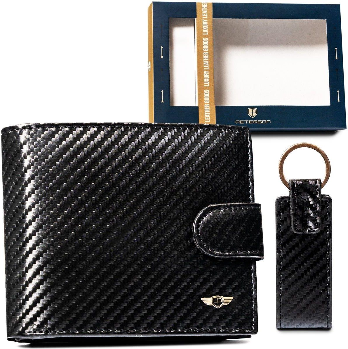 PETERSON skórzany portfel męski carbon + brelok zestaw upominkowy Bartoszyce