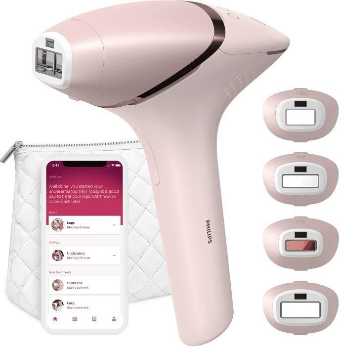 Epilator i depilator Philips BRI976/00 Lumea IPL Wyposażone w technologię SenseIQ Skóra pod pachami, ciało, twarz Z czujnikiem SmartSkin. Zasilanie akumulatorowe i sieciowe 4 inteligentne nasadki. 450 000 błysków Inteligentna analiza skóry za pomocą technologii SkinAI Nasza bezpłatna aplikacja, zapewnia szczegółowe wskazówki dotyczące używania produktu, a dodatkowo została wyposażona w wyjątkową technologię do analizy skóry i śledzenia procesu redukcji owłosienia. Stworzone wspólnie z dermatologami dla bezpiecznej i delikatnej depilacji Firma Philips — lider w dziedzinie rozwiązań technologicznych dla zdrowia — opracowała urządzenie do depilacji Lumea IPL we współpracy z dermatologami, dzięki czemu jest ono proste w użyciu, skuteczne i bezpieczne. Zastosowanie technologii używanej w profesjonalnych salonach sprawia, że zapewnia ono bardzo delikatne usuwanie owłosienia, także we wrażliwych obszarach ciała. Jedno rozwiązanie do depilacji zarówno twarzy, jak i całego ciała z trzema inteligentnymi nasadkami Po podłączeniu specjalnie zaprojektowane nasadki perfekcyjnie dopasowują się do krzywizn ciała i aktywują najskuteczniejsze dla danego obszaru programy depilacji. Twarz: płaska nasadka z niewielkim oknem z filtrem UV. Ciało: nasadka zakrzywiona do środka z dużym oknem. Zabiegi precyzyjne: nasadka zakrzywiona na zewnątrz w celu dotarcia do trudno dostępnych miejsc. W celu uzyskania szybkich rezultatów, wystarczy wykonywać zabieg dwa razy w miesiącu Przez pierwsze sześć tygodni zabiegi wykonuj co dwa tygodnie (w odróżnieniu od cotygodniowych zabiegów urządzeniami innych marek), a następnie co miesiąc, aby utrzymać uzyskany rezultat. Tylko tyle! Wykonanie zabiegu na dolnych partiach nóg trwa tylko 8,5 minuty. Delikatność i komfort dzięki technologii SenseIQ Seria Lumea 9900 została wyposażona w pięć regulowanych ustawień mocy światła. Nasz czujnik SmartSkin analizuje odcień skóry, aby wybrać ustawienia zapewniające największy komfort zabiegu. Inteligentne nasadki dostosowują zabieg do każdego obszaru ciała. Jedyne urządzenie Lumea z opcją bezprzewodową Urządzenie Lumea serii 9900 jest jedynym bezprzewodowym urządzeniem do depilacji światłem w naszej ofercie, które jeszcze bardziej ułatwia precyzyjne dotarcie do wszystkich obszarów ciała oraz wykonywania zabiegów w dowolnym miejscu. Philips Lumea 9900 zapewnia skuteczne działanie w przypadku wielu różnych typów włosów i skóry Urządzenie IPL bazuje na kontraście pomiędzy pigmentem we włosach a pigmentem skóry, dlatego działa w przypadku włosów w kolorze naturalnego ciemnego blondu, brązu oraz czarnych, a także skóry o odcieniu od jasnego do ciemnego brązu (I–V). Philips Lumea nie można stosować w przypadku włosów w kolorze białym, siwym, jasny blond lub rudym ani w przypadku bardzo ciemnej skóry.