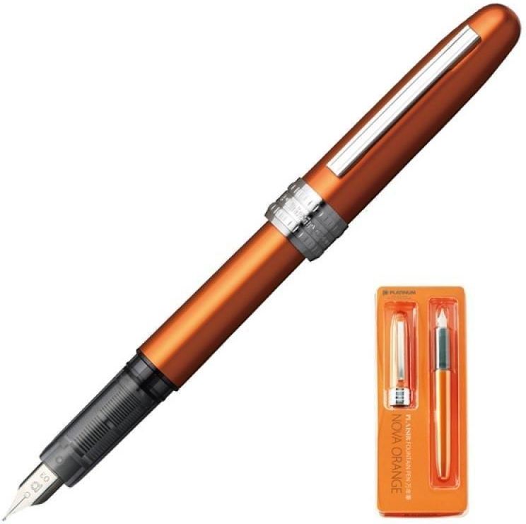 PIÓRO WIECZNE PLATINUM PLAISIR, BLISTER, POMARAŃCZOWY Pióro wieczne Platinum Plaisir posiada skuwkę z systemem „Slip & Seal”, która zapobiega wysychaniu atramentu, umożliwiając płynne pisanie nawet po nieużywaniu pióra wiecznego przez cały rok. Korpus wykonany jest z aluminium w pomarańczowym, …