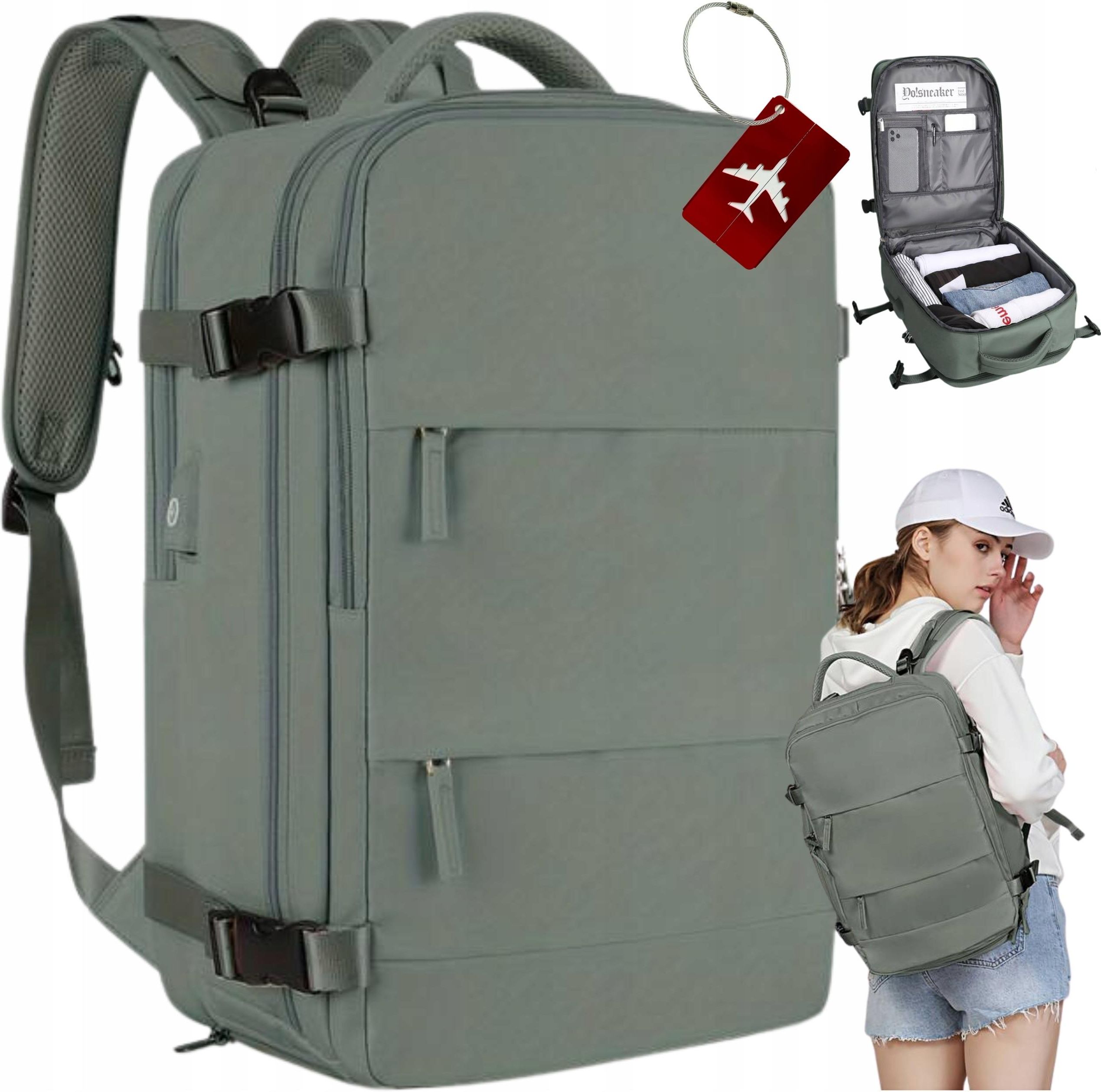 PLECAK PODRÓŻNY DO SAMOLOTU KABINÓWKA RYANAIR BAGAŻ PODRĘCZNY WIZZAIR Funkcjonalny i wygodny plecak, który idealnie sprawdzi się podczas podróży i w codziennym użytkowaniu. Dzięki swojej konstrukcji umożliwia łatwy dostęp do całej zawartości. Dodatkowo, plecak ten spełnia wymogi dotyczące bagażu podręcznego, co pozwoli uniknąć opłat za bagaż rejestrowany oraz przyspieszy procesy lotniskowe. WYGODA W PODRÓŻY LOTNICZEJ: Plecak spełnia wymogi linii lotniczych dotyczące wymiarów bagażu podręcznego, dlatego możesz go mieć przy sobie w samolocie. SZYBSZE PROCEDURY LOTNISKOWE: Bagaż podręczny zazwyczaj nie wymaga sprawdzania, co oznacza, że ​​możesz ominąć kolejki do stanowiska odprawy bagażu. ŁATWY DOSTĘP DO ZAWARTOŚCI: Plecak można otworzyć jak walizkę co umożliwia dostęp do całej zawartości. Dzięki temu łatwiej jest zlokalizować i wyjąć potrzebne przedmioty, bez konieczności przekopywania się przez całą zawartość plecaka. ORGANIZACJA I SEGREGACJA: Plecak posiada wiele kieszeni, przegródek oraz paski kompresyjne, które ułatwiają organizację i segregację rzeczy. MOBILNOŚĆ: Plecak umożliwia swobodne poruszanie się. Bez konieczności ciągnięcia kołowych walizek, łatwiej przemieszczać się przez tłumy, schodzić po schodach, przechodzić przez nierówne tereny czy korzystać z różnych środków transportu publicznego. ESTETYKA: plecak jest nie tylko funkcjonalny, ale także prezentuje atrakcyjny design. WIELOFUNKCYJNOŚĆ: plecak posiada dodatkowe funkcje, takie jak port USB, wodoodporny materiał oraz specjalną kieszeń na laptop. Specyfikacja Materiał: nylon, wodoodporny Wymiary: 40x25x16 cm Kolor: ZIELONY Plecak posiada: usztywnione dno plecy i szelki wypełnione miękką pianką oraz wykończone siatką dystansową, która pozwoli plecom "oddychać" 12 kieszeni i przegródek, w tym specjalną przestrzeń na buty kabel USB, pod który można podłączyć np. power bank. Na plecach pod szelkami znajduje się dyskretna kieszeń zapinana na zamek oraz pas umożliwiający założenie plecaka na rączkę walizki. Plecaki spełniają wymagania dotyczące bagażu podręcznego najpopularniejszych linii lotniczych, takich jak Wizz Air i Ryanair. W tych liniach lotniczych istnieje możliwość zabrania plecaków na pokład samolotu bez dodatkowej opłaty. Plecaki są idealne dla podróżujących z liniami lotniczymi EasyJet, gdzie możliwe jest zabranie bagażu o tych wymiarach na pokład bez dodatkowych opłat. Do każdego organizera dodajemy zawieszkę do walizki gratis! UWAGA Kolor zawieszki zostaje wybrany losowo. Na naszych pozostałych aukcjach można zakupić plecaki w innych kolorach.
