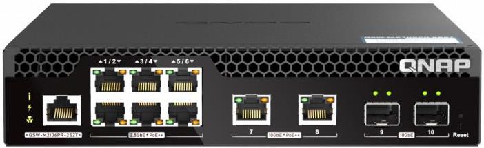 Qnap QSW-M2106PR-2S2T 10-portowy przełącznik 2x 10GbE SFP +, 2x 10GbE RJ45, 6x 2.5GbE RJ45,PoE (8 portów), 1 złącze RJ45 1GbE Kopia Bartoszyce