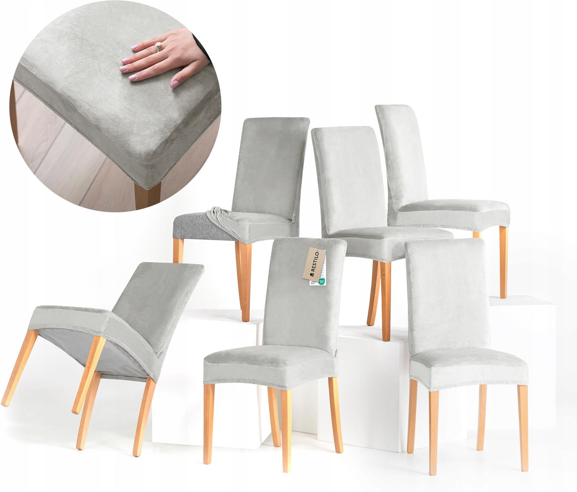 Restilo pokrowce na krzesła 6 szt welurowe szary Bartoszyce