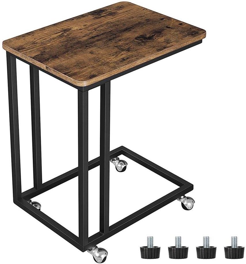 Stolik na Kółkach - LNT50X " Opis produktu marki OSKAR: Stolik wykonany w stylu rustykalnym, czyli odpowiednio stylizowanym na wiekowy. Stolik możemy wykorzystać na 2 sposoby: jako stolik kawowy w salonie oraz jako szafka nocna w sypialni. To od Ciebie zależy czego aktualnie bardziej potrzebujesz. Na co dzień w salonie spędzamy czas pijąc ulubioną filiżankę kawy, pijemy ją jednak sami bądź w towarzystwie partnera, nie potrzebujemy zatem dużej ławy, która zabiera sporo miejsca. Świetnym rozwiązaniem jest prezentowany stolik kawowy, który zachwyca wyglądem i sprawia, że Twój salon zamienia się w przestronne pomieszczenie. Wykorzystując stolik w funkcji szafki nocnej możemy umieścić go obok łóżka trzymając na nim wszystkie rzeczy, które chcemy mieć pod ręką np. książki, budzik, kwiat w doniczce, możemy też na nim wyeksponować nasze pięknie oprawione zdjęcia. Meble w stylu loft to ostatni krzyk mody. Stolik na pewno wpasuje się w wystrój niejednego pomieszczenia. Metalowa konstrukcja zapewnia stabilność mebla. 4 skrętne kółka zapewniają stolikowi mobilność. Idealnie spasowane elementy ramy oraz rustykalna oprawa blatu nadadzą Twojemu wnętrzu wdzięku. Zadbaj o estetykę swojego salonu, pokoju, czy sypialni wybierając produkty sprawdzone, o najwyższej jakości wykonania. SPECYFIKACJA: Kolor: rustykalny brąz (ciemny orzech), czarny Materiał: płyta wiórowa, metal Wymiary: 50 x 35 x 61/56,5 cm (szerokość x głębokość x wysokość z kółkami/z nóżkami) Waga: 5,5 kg Max. obciążenie blatu: 25 kg W zestawie 4 nóżki, na które możemy wymienić kółka w ławie. Stolik możemy używać w 2 wersjach: na kółkach oraz na nóżkach. Kółka zapewnią pełną mobilność mebla, natomiast regulowane nóżki pomogą w odpowiednim wypoziomowaniu mebla nawet na nierównej podłodze. Produkt można zestawić z innymi meblami z tej kolekcji, które razem będą prezentować się perfekcyjnie. Dane logistyczne 1 x SKU 2029 waga 5,4 kg brutto - wymiary 57 x 40 x 9 cm. "