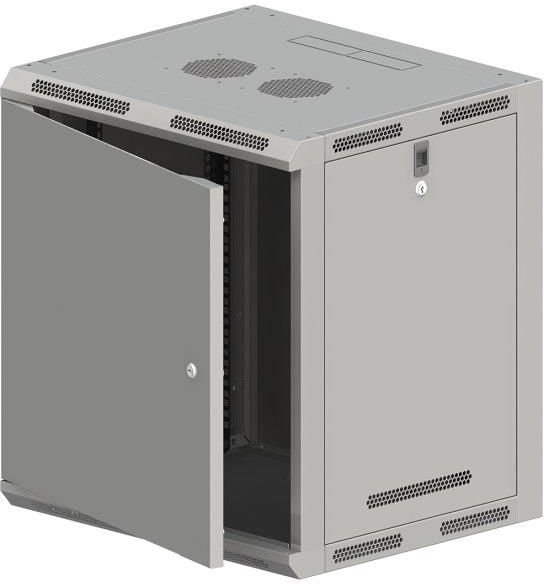 Szafa wisząca 19" 12U 600x500, niedzielona, DRZWI METALOWE jednoskrzydłowe, tył osłona pełna, osłony boczne ruchome perforowane, Bartoszyce