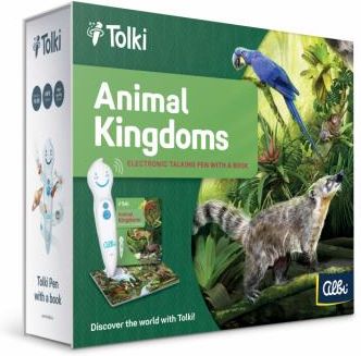 To książki, które znacie, ale wyłącznie w języku angielskim. Nie ma w nich polskiego tłumaczenia. Świetne do nauki języka angielskiego dla dzieci i dorosłych - znakomicie powiększą zasób słów! Sprawdzą się w edukacji dzieci dwujęzycznych, które znają już książki Czytaj z Albikiem. Doskonała pomoc dla nauczycieli angielskiego i ich uczniów. Działają z piórem Albik! UWAGA! Książka działa tylko i wyłącznie w języku angielskim. The book will guide you thematically through eight different environments on our planet, such as forest, savannah, desert, sea, and more. On each page, you will learn what animals live in each respective environment, what their names are, what sounds they make, and what makes them interesting. You can then test your knowledge with fun quizzes, which are always divided into three categories: find an animal by its name, find an animal by the sound that it makes and find an animal by some interesting fact that you have just learnt. What is Tolki? Tolki is a unique educational concept giving children and adults alike the opportunity to learn lots of interesting and useful facts in a playful and engaging way that children will simply love! All you have to do is gently touch the picture or text with the interactive talking pen to hear the respective information, sound, or music. Playing with the interactive talking pen offers unlimited possibilities - not only can the pen read texts, sing songs, and play real sounds (a lion’s roar, birdsong, vehicle sounds etc.), but you can also use it to play various games and quizzes. The set includes: Tolki the electronic talking pen, Animal Kingdoms book, 16 GB SD card, charger, USB cable, Guide to the Tolki World, headphone jack (headphones are not included) Technical specifications: 16GB memory, USB 2.0, high-speed connection, Li-ion battery, built-in rechargeable 365 mA / 3.7 V, charger, 500 mA / 5V, compatible with Windows OS. Zawartość setu: Elektroniczne pióro, Książka Animal Kingdoms, karta SD 16GB, ładowarka, kabel USB, przewodnik, wejście na słuchawki jack (słuchawki nie są zawarte w zestawie).