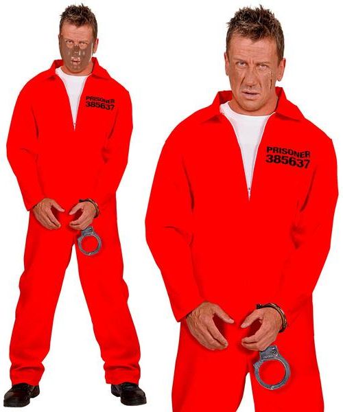 STRÓJ WIĘŹNIA SKAZAŃCA L Strój więźnia. Kominezon zapinany z przodu na zamek. Zdobiony czarnym napisem "Prisoner" oraz numerem. Na plecach posiada napis "County Jail". W zestawie kajdanki. Na pozostałych naszych aukcjach oferujemy maski, kajdanki, kule u nogi, czapki więźnia a także stroje dla …